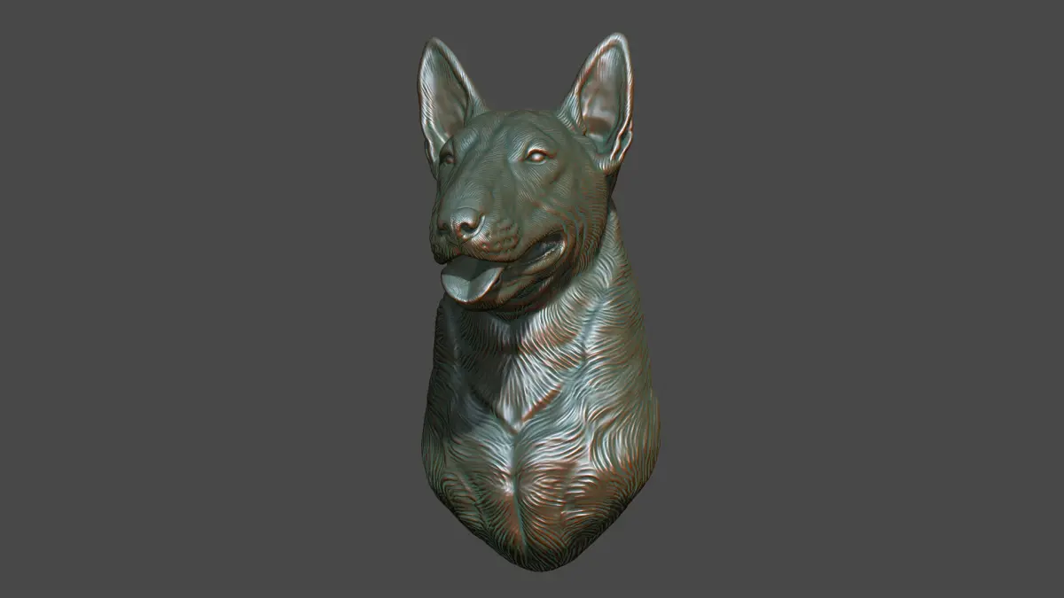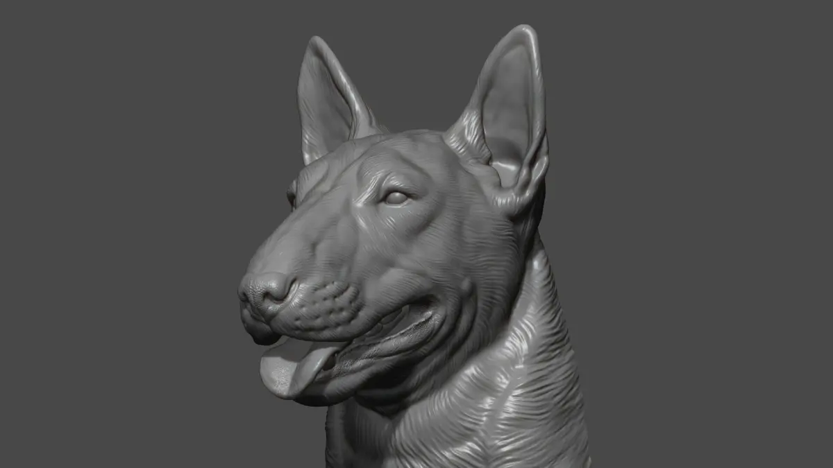 500K STL, OBJ triangulated, Bull Terrier head on the base in parts