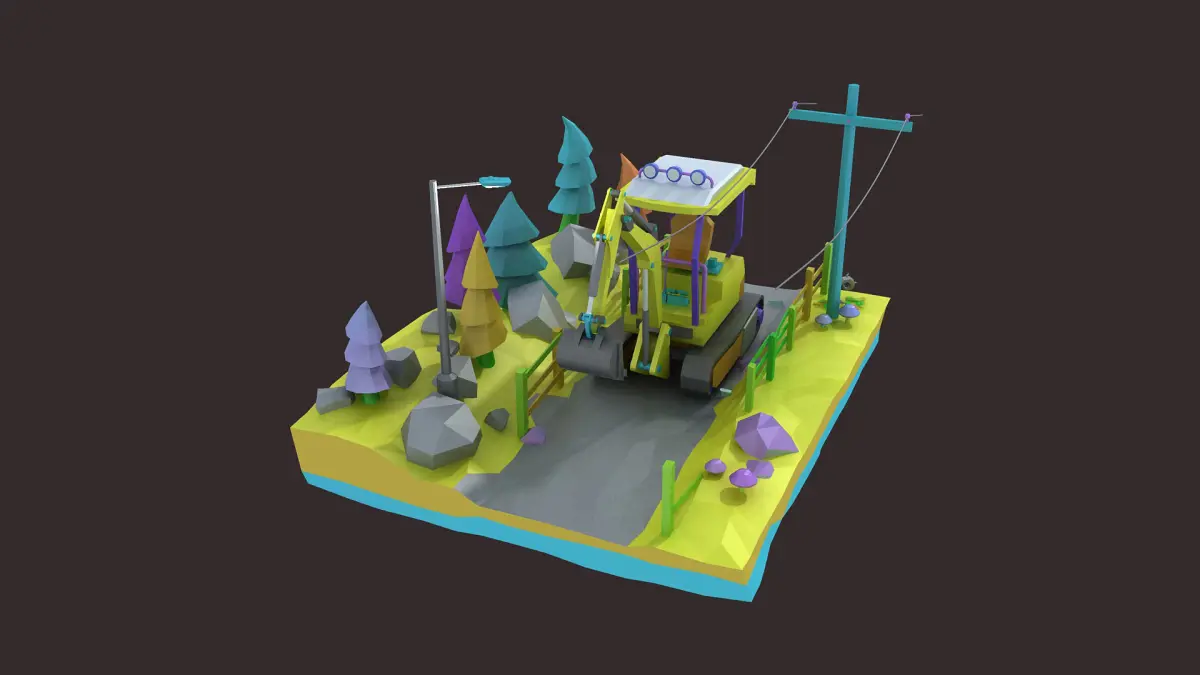 bulldozer car cartoon crane crawler forklift heavy industrial 3D model