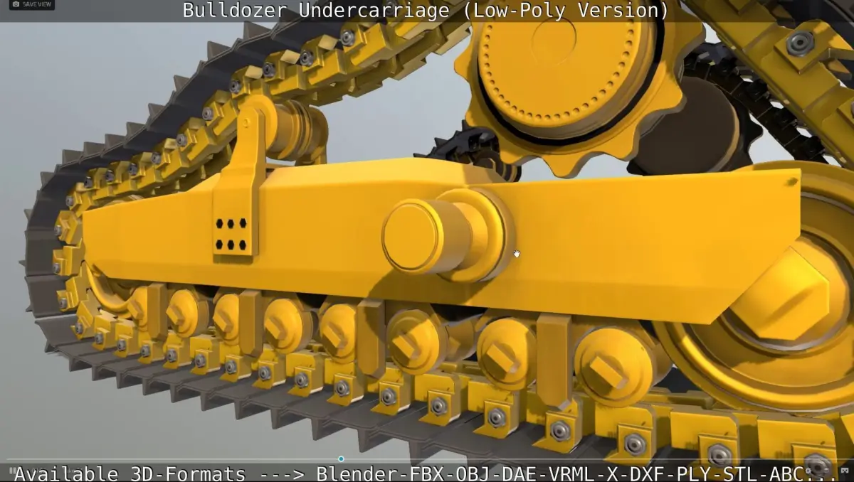 Here is the low-poly version of my rigged bulldozer undercarriage with pbr textures.It is low-poly as posible for a bulldozer undercarriage.