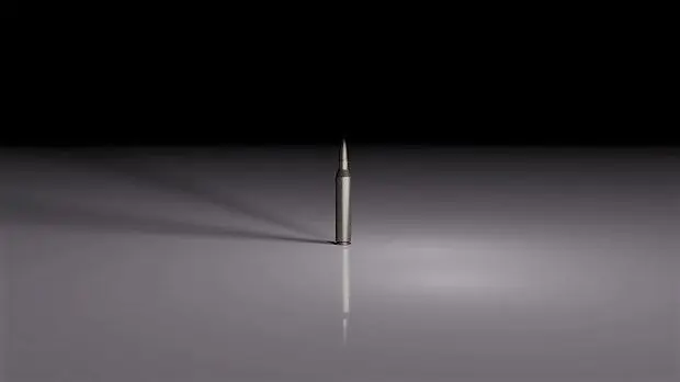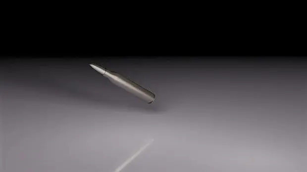 Very detailed and highly accurate 7.62 x 39 rifle cartridge for the popular AK-47 and its many variants. The model features a separate brass case, primer, and jacketed bullet.