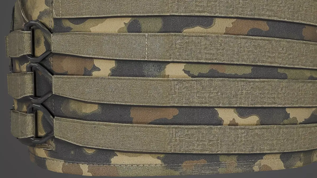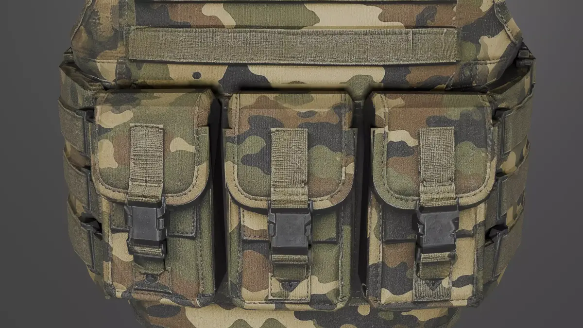 The colour palette of the model shows shades of green, yellow, brown and blackto achieve the required textures.
