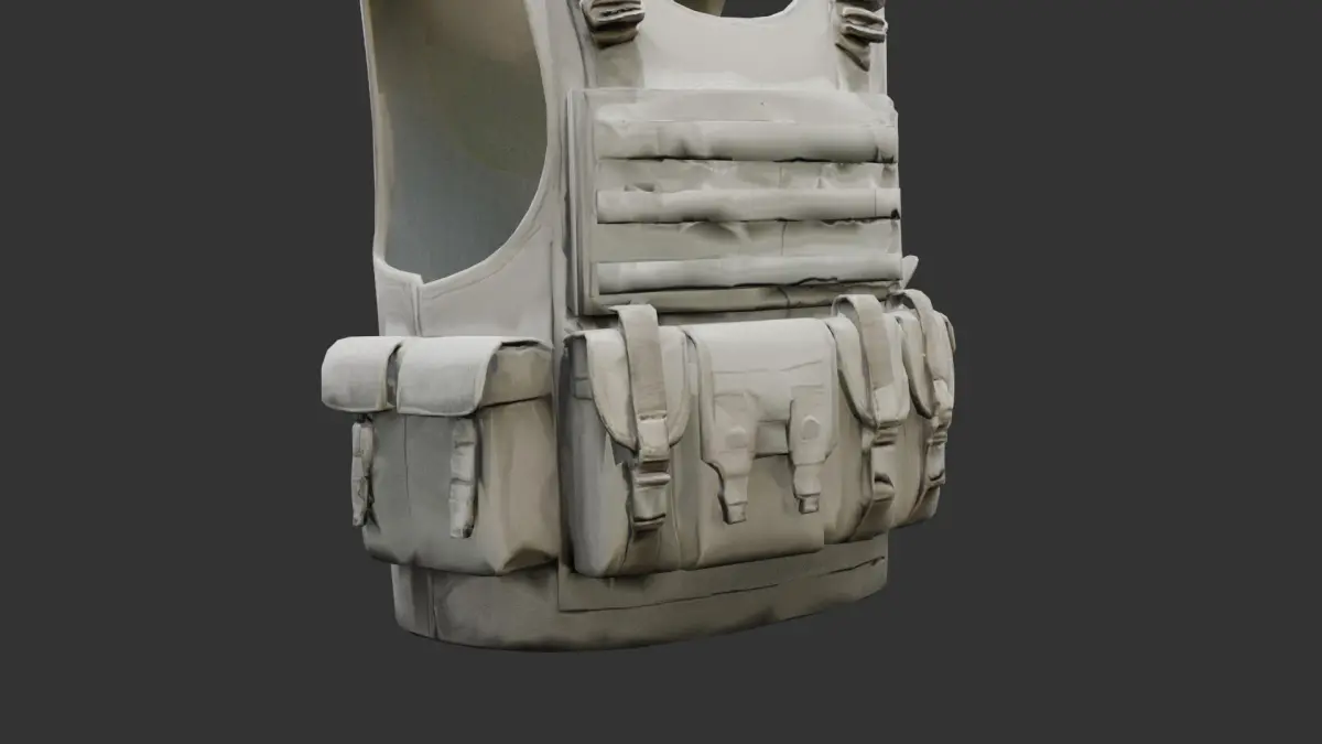 This detailed model includes a tactical bulletproof vest with realistic stitching, padded texture, and modular pouches. Great for soldier bases or gear depots.