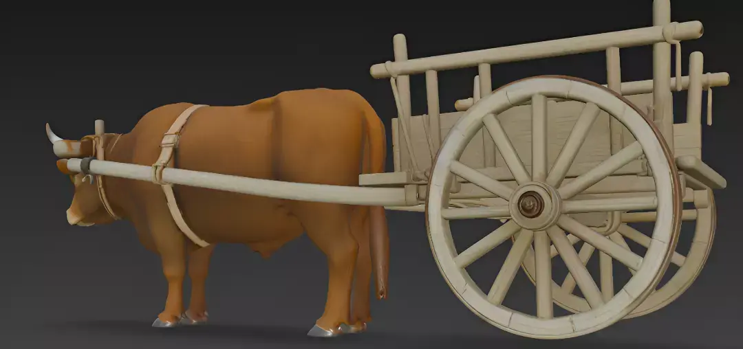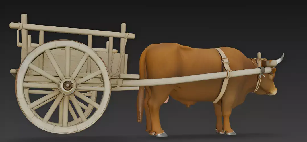 This is a finely crafted 3D model of a traditional bullock cart, ideal for game developers, animators, and 3D artists. The model features two detailed oxen with realistic textures, horns, and harnesses, paired with a wooden cart showcasing authentic wooden grain and structure. Perfect for historical, rural, or fantasy scenes, this model is optimized for smooth rendering and offers customization potential. Suitable for animations, games, or high-quality renders.