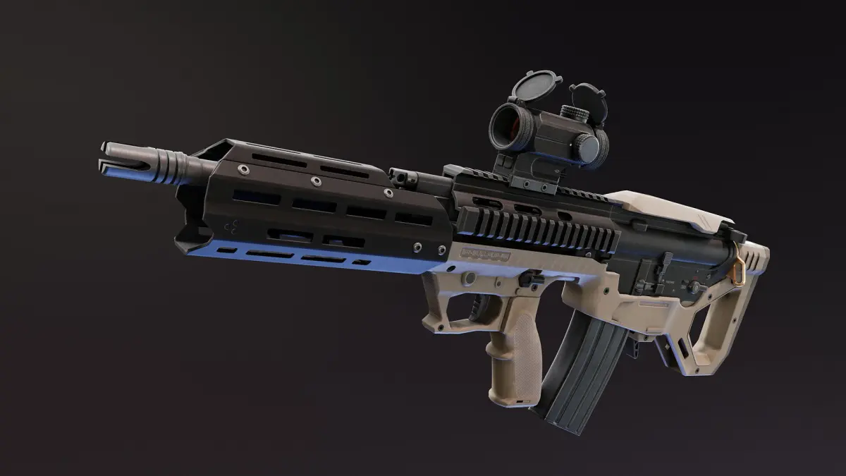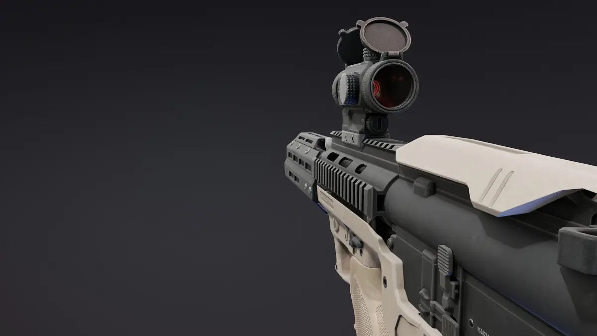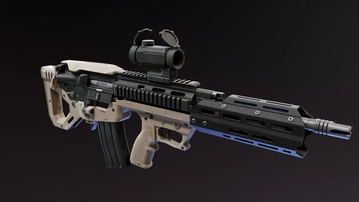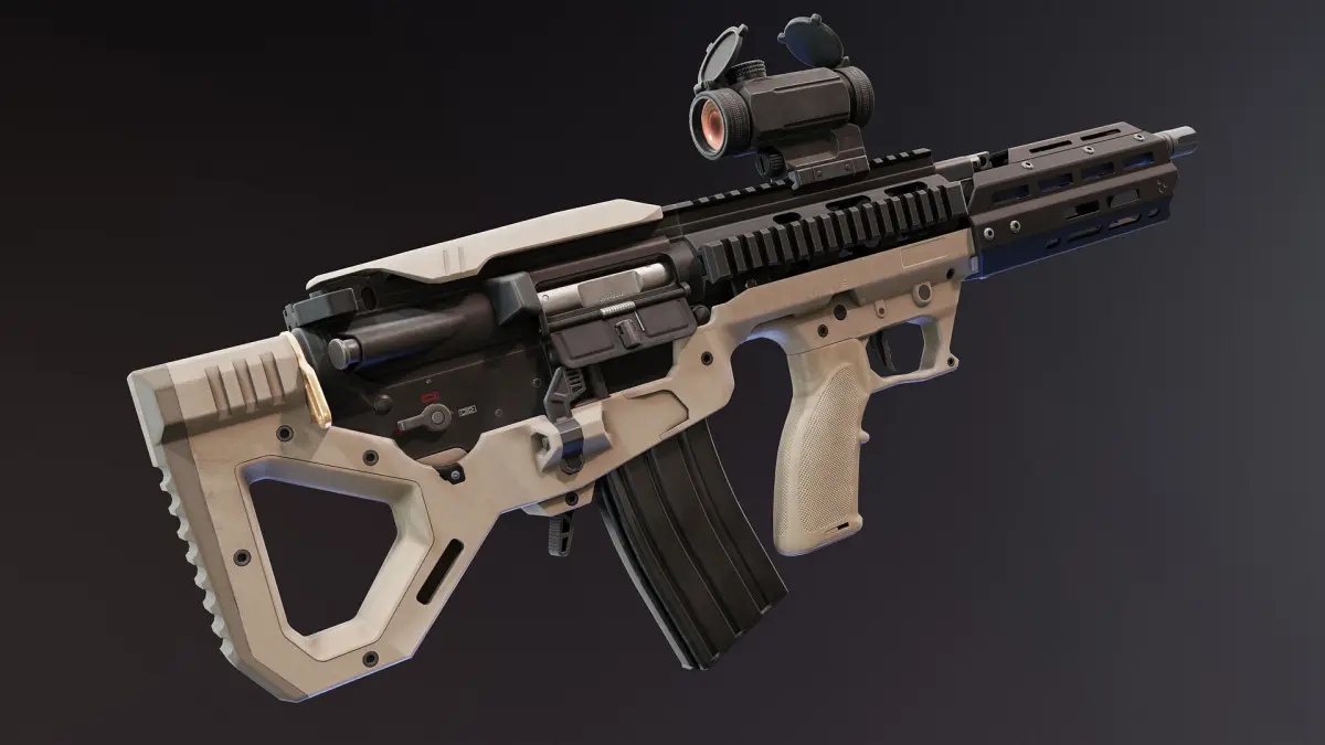 It has one separate 4K PBR Material for the chassis itself. Four PBR Materials for rifle, one 4K for reddot and one 2K for lenses. The Bullpup kit also came with Black and FDE textures.