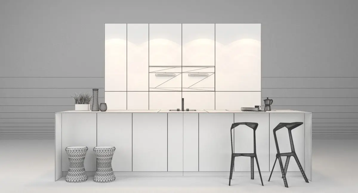 A DETAILED 3D MODEL OF A BULTHAUP KITCHEN