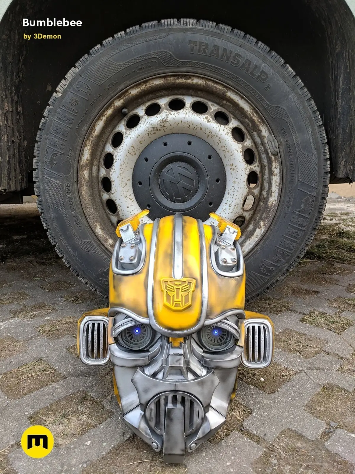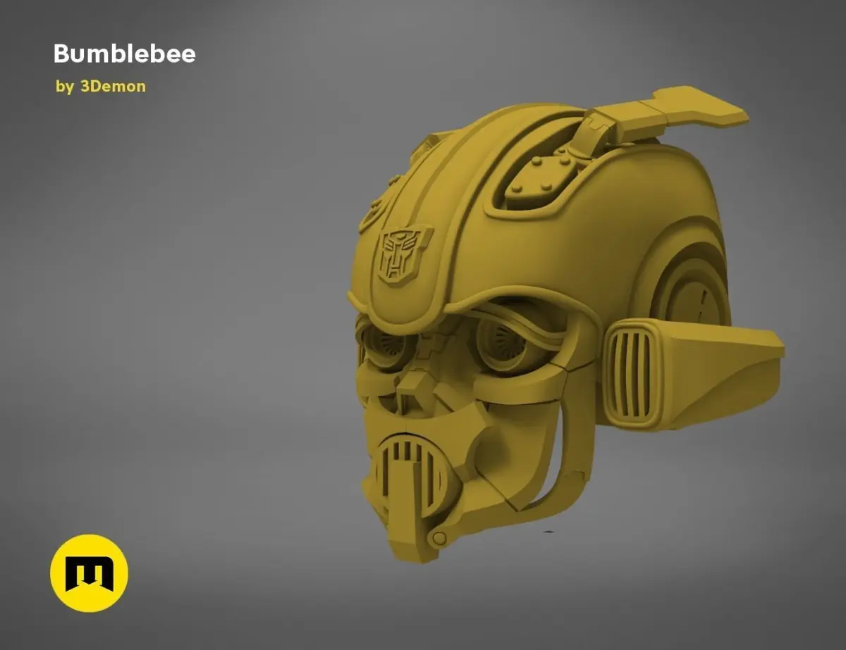 Bumblebee - wearable helmetThis is the model of Bumblebee’s head from his 2018 solo movie where he transforms from a classic Volkswagen Beetle.This model is a wearable helmet. The helmet is quite big and is meant to be post-processed.Files contain pieces of the helmet ready to be 3D printed and complete helmet files, that are not cut into smaller pieces.