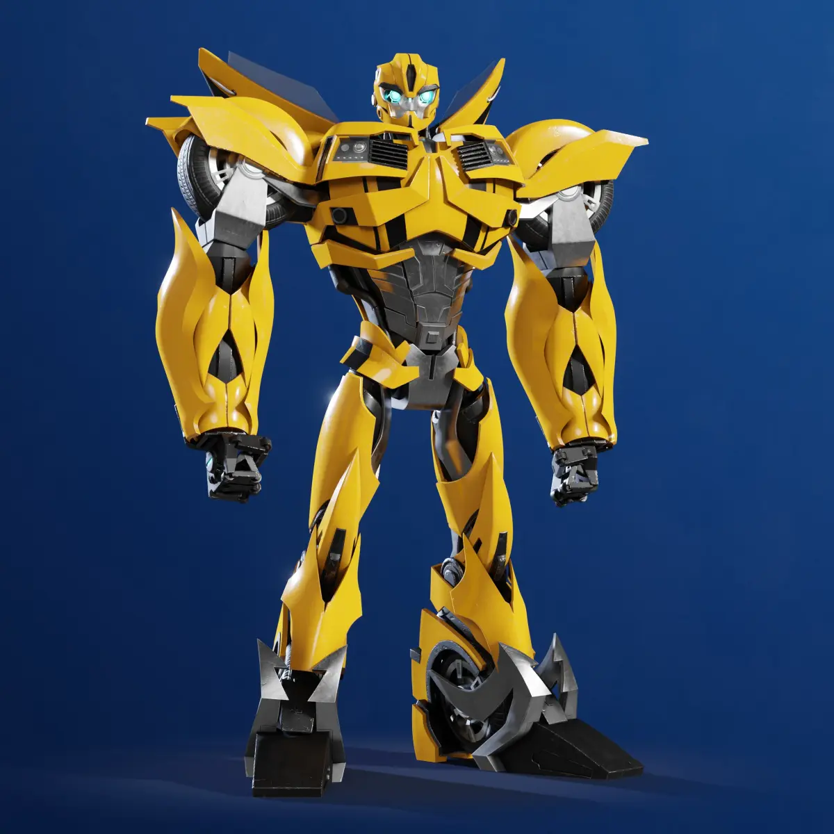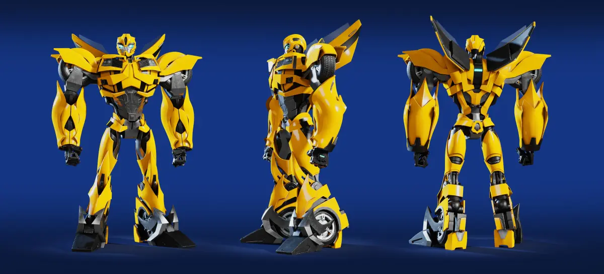 3D model rig of the much beloved Bumblebee, from the Transformers Prime series. The model was created from scratch, using images and footage of the show as reference. Dedicated with much passion and love for the franchise to get the best level of likeness, and recreate the character into a brand new 3D model, with rigging and PBR materials, ensuring appropriate usability for animations and games.The native file type is BLEND as it was created with Blender, however with OBJ, FBX as well as PBR textures provided, it will work with any 3D programs.
