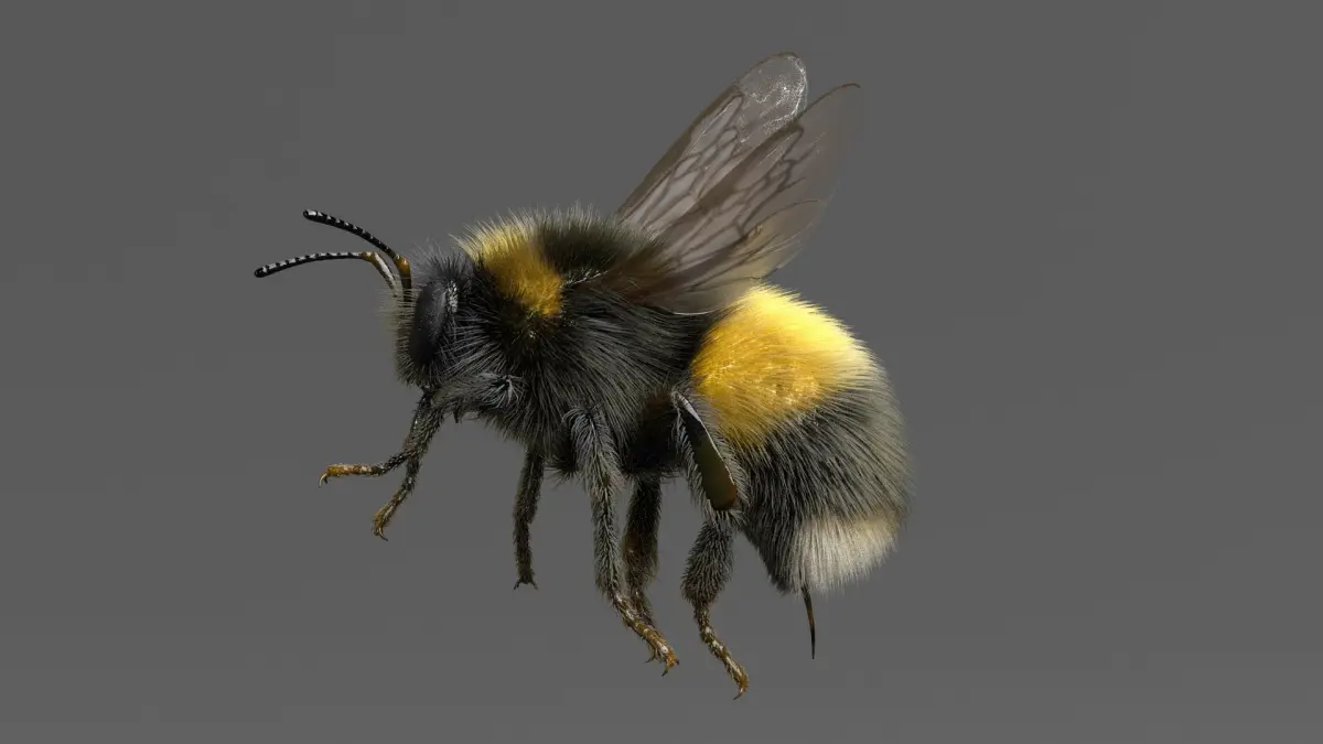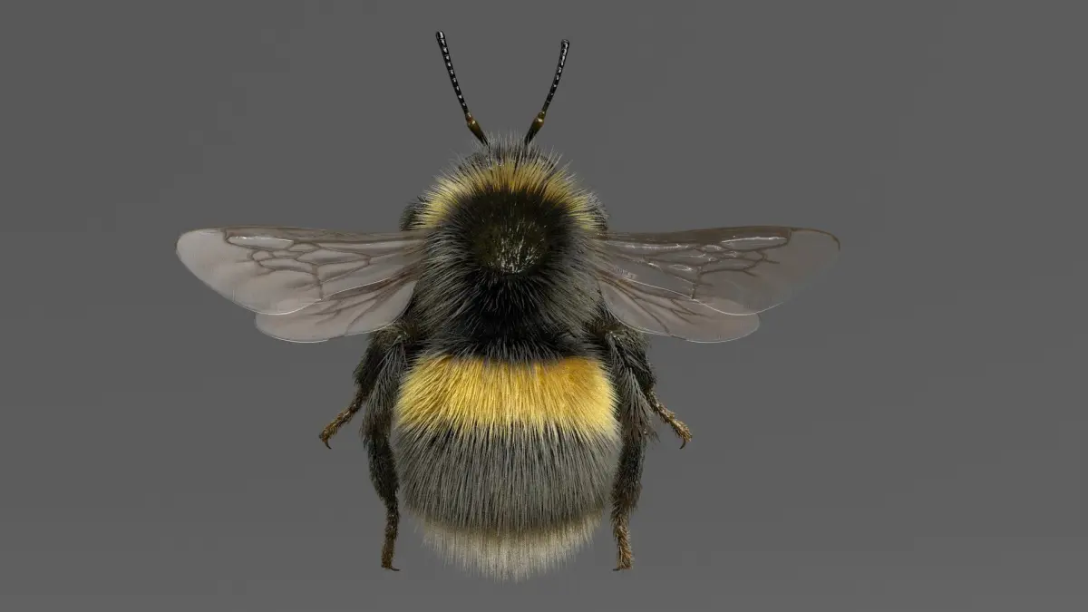 Rigged 3D model of White-tailed Bumblebee (Bombus lucorum), created in Maya 2018.