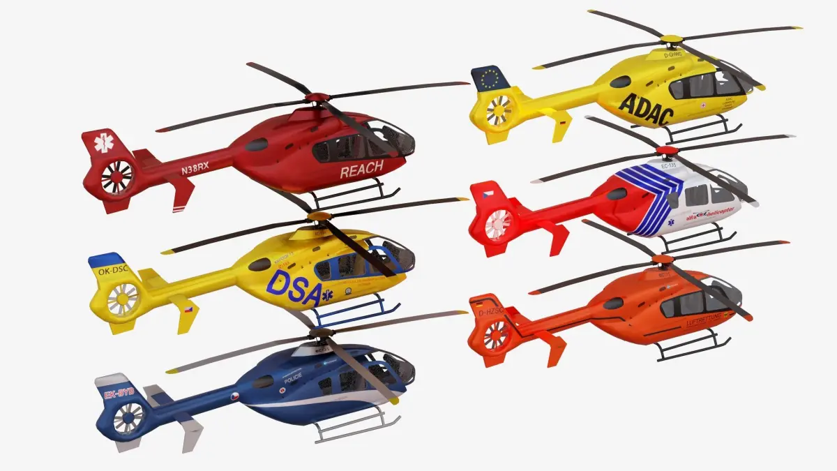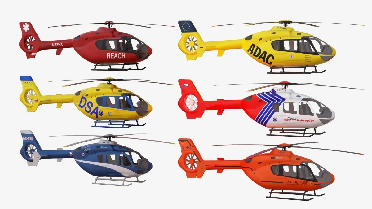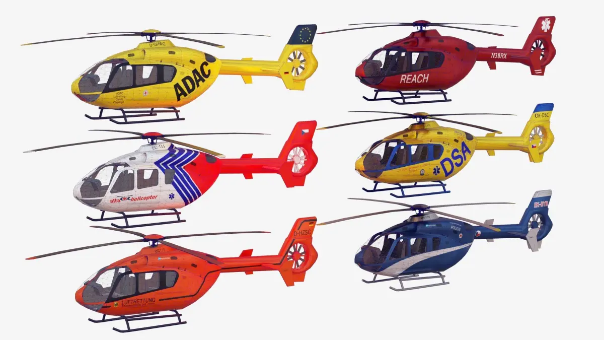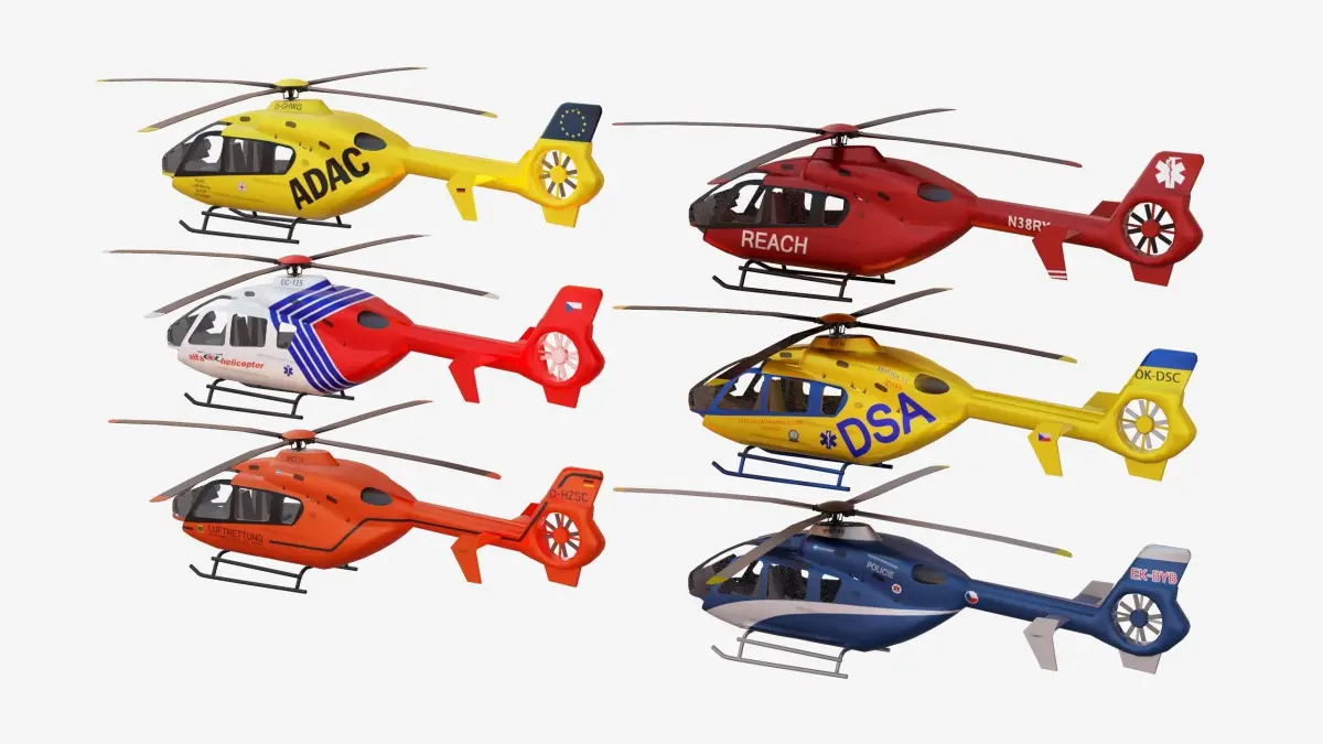 Bundle 6x Airbus EC 135 Low-poly 3D model