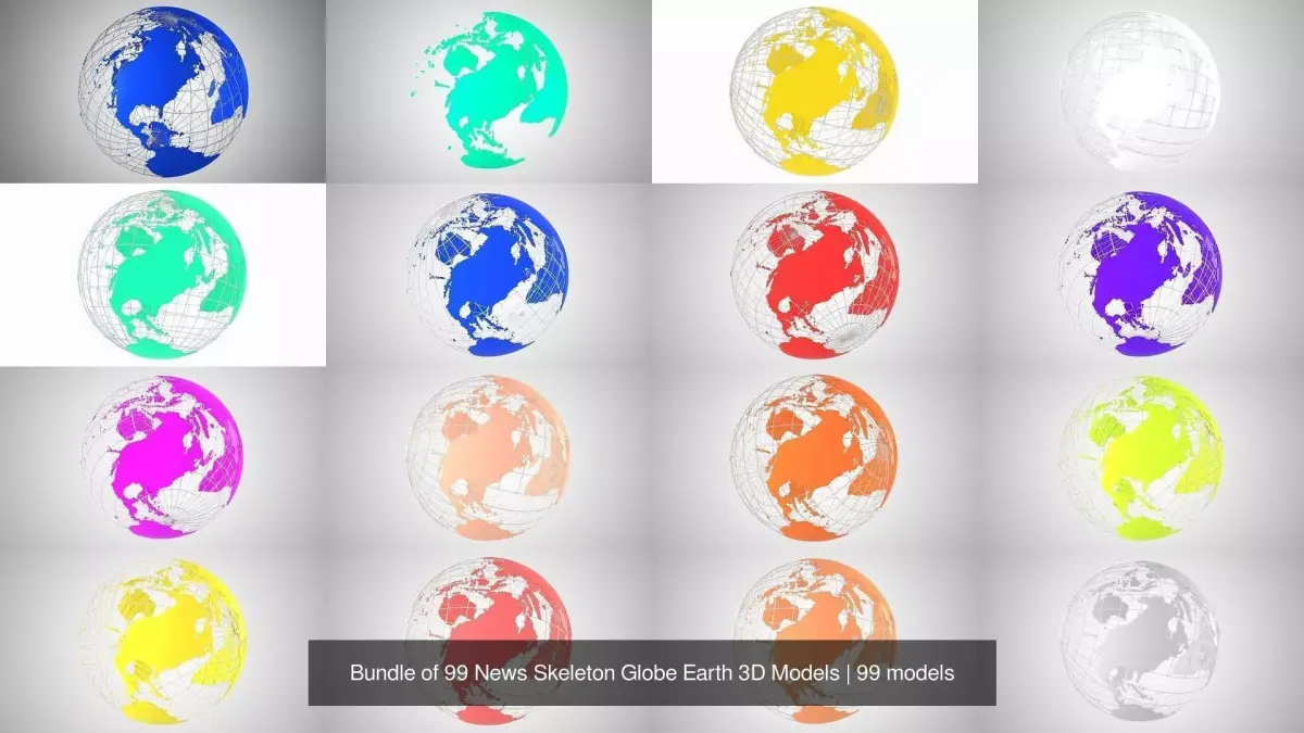 Here is the entire collection of 99 News Skeleton Globe Earth 3D Models based on most used colors by all businesses, industries etc. 99 Colors to suit your brand's personality.