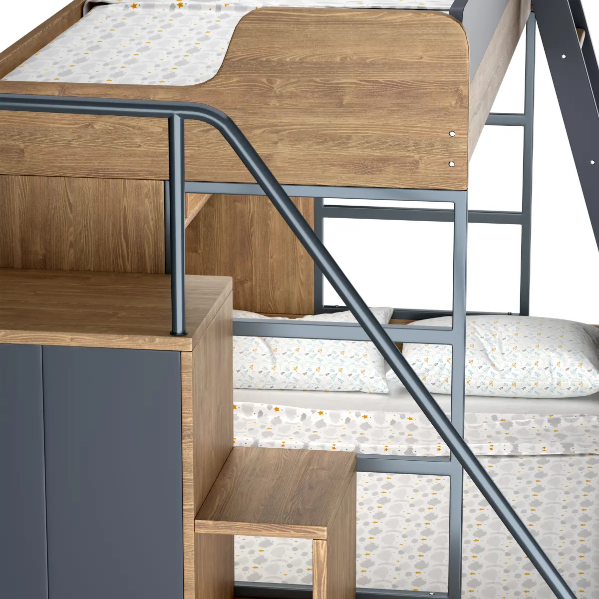 Name: Bunk BedType: modelFormat: 3Ds Max 2016Export: OBJRender: Corona (7)Polys: 427152Verts: 429242Units: MillimetersDimension: 2384.45 x 1330.13 x 1739.58Date: 2023.7.27