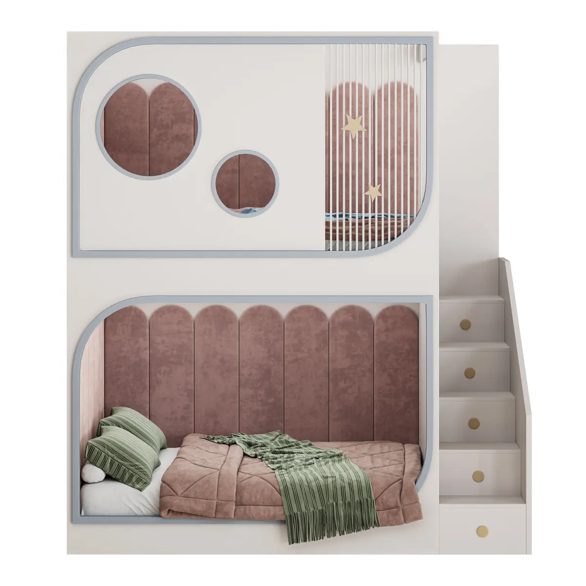 Name: Bunk bed for children 3Type: modelFormat: 3Ds Max 2016Export: FBX, OBJRender: Corona (10)Polys: 688353Verts: 699537Matclasses: CoronaLegacyMtlUnits: MillimetersDimension: 2400.0 x 1862.79 x 2700.35