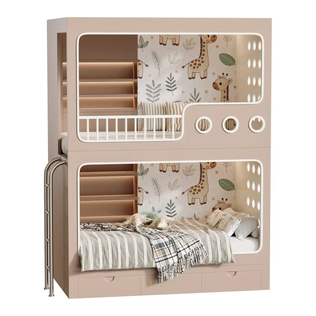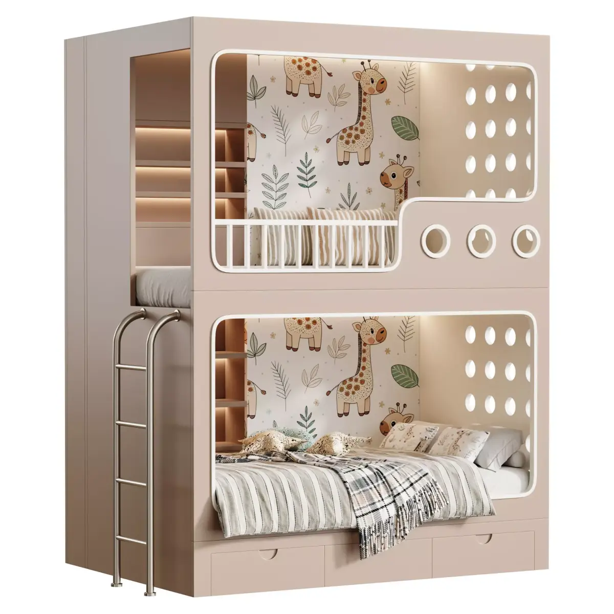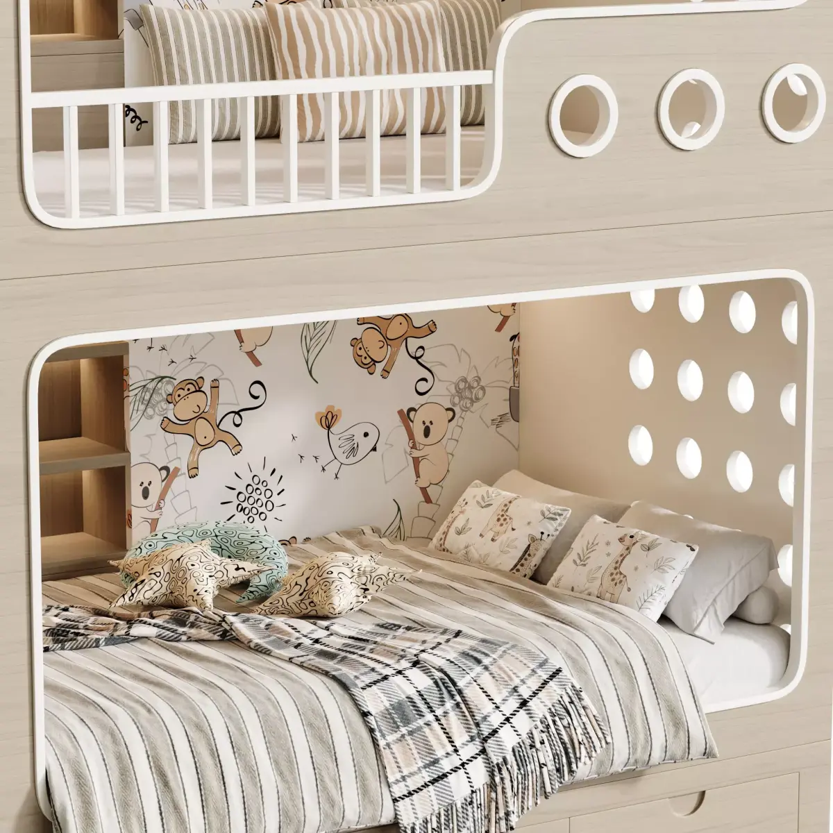 Name: Bunk-bed-for-kids-001Type: modelFormat: 3Ds Max 2016Export: FBX, OBJRender: Corona Renderer 10, V-RayPolys: 1057909Verts: 536060Units: CentimetersDimension: 228.07 x 162.29 x 280.0Description: This modern bunk bed for kids features a playful and functional design with smooth rounded openings and a soft wood finish. The upper level includes a protective railing for safety, while the lower bunk provides a cozy sleeping space enhanced by integrated shelves and decorative lighting. The charming wallpaper with cheerful cartoon animals creates a joyful atmosphere, making it perfect for children’s bedrooms. Designed for both practicality and visual appeal, this model offers realistic materials and lighting optimized for Corona and V-Ray renders.Tags: bunk bed, kids furniture, children bedroom, double bed, modern design, wooden furniture, kids room decor, playful interior, 3ds max model, corona render, vray render, realistic bed model, storage drawers, interior visualization, modern bunk bed, child safety rail, cozy space, decorative lighting, soft wood finish, bedroom design