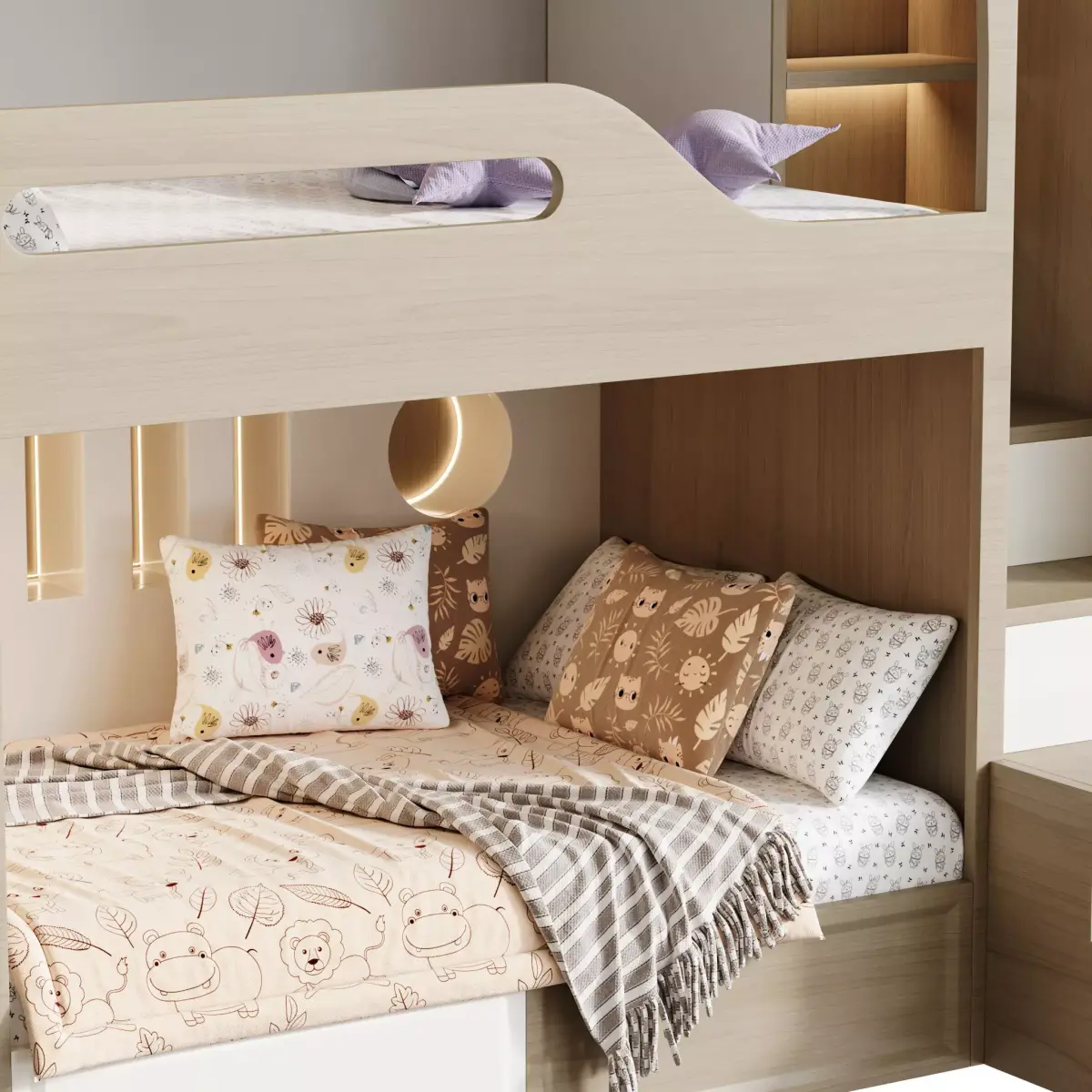 Name: Bunk-bed-for-kids-002Type: modelFormat: 3Ds Max 2016Export: FBX, OBJRender: Corona Renderer 10Polys: 341237Verts: 341072Units: CentimetersDimension: 245.0 x 196.79 x 280.0Description: A stylish and functional bunk bed for kids designed with a balance of comfort, safety, and aesthetics. The model features two spacious sleeping areas, built-in shelving for toys and books, and smooth rounded edges for a child-friendly appearance. Its modern wooden structure and integrated lighting create a warm and inviting atmosphere. The design is ideal for contemporary children's bedrooms, combining practicality with a playful touch suitable for both boys and girls. Optimized for Corona Renderer, it ensures realistic materials and detailed visualization.Tags: bunk bed, kids furniture, modern bunk bed, wooden bed, children bedroom, kids room design, interior furniture, double bunk, 3ds max model, corona render, realistic model, bedroom decor, safe design, playroom furniture, cozy bed, built-in storage, lighting design, modern interior, furniture visualization, kids home decor