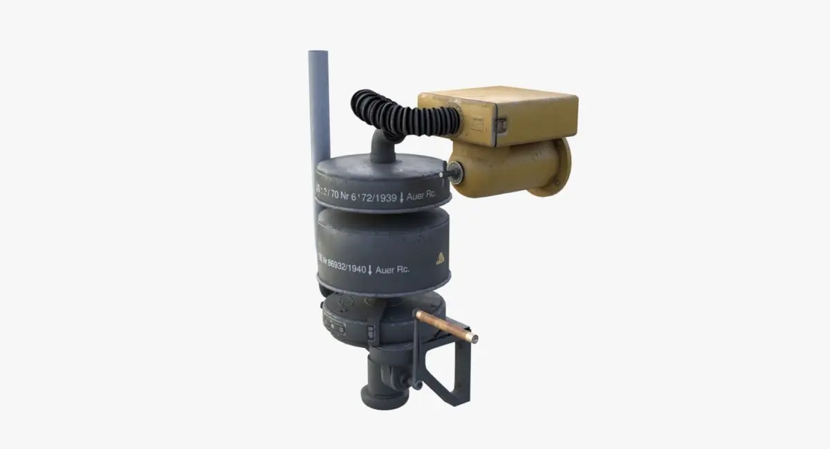 This is the model of an air-filter used in german bunker during the Second World War. This tool could be used manually or electrically by an engine to filter air inside the bunker. This model represente a 2 filters size version.