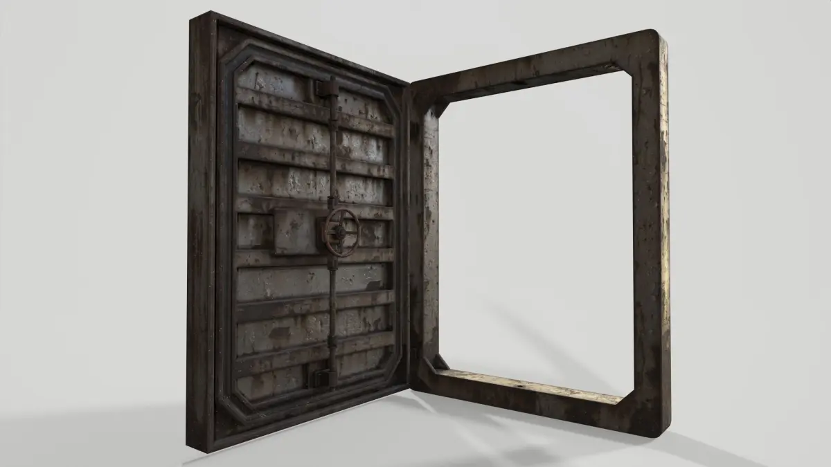 Pbr lowpoly game ready bunker door in photorealistic style with color selection. The 3D model is fully ready for use in games.