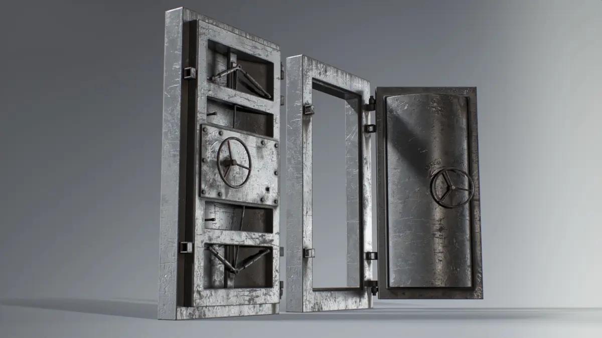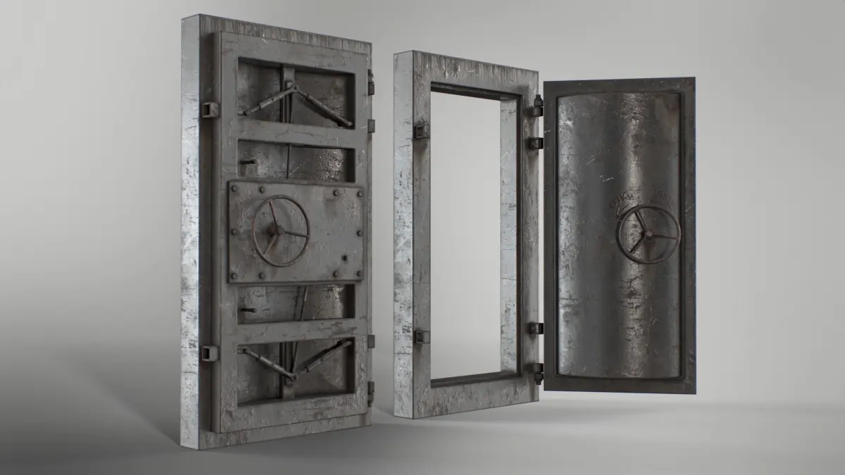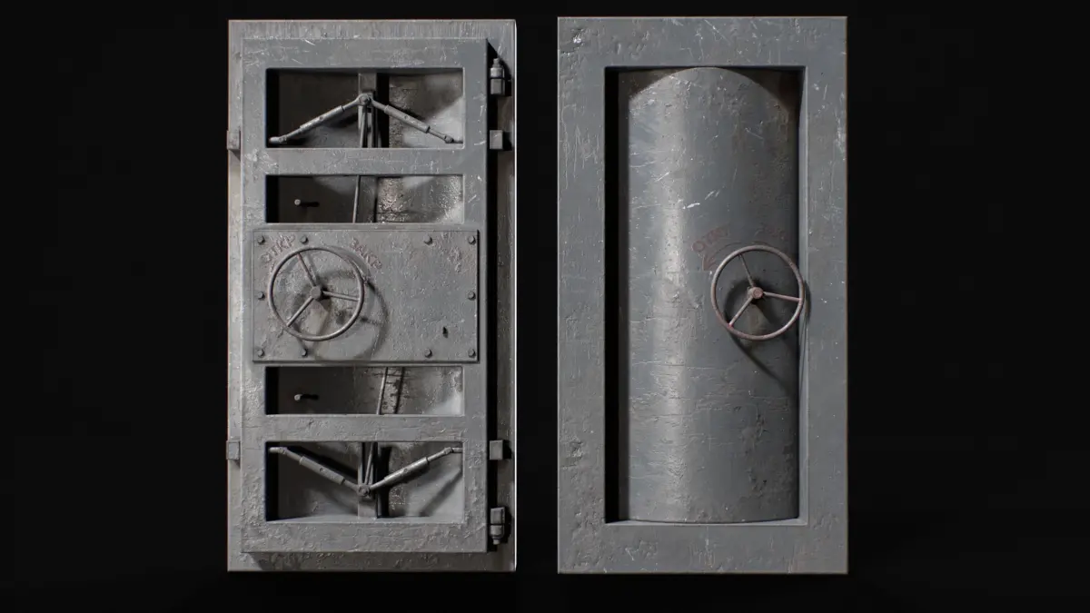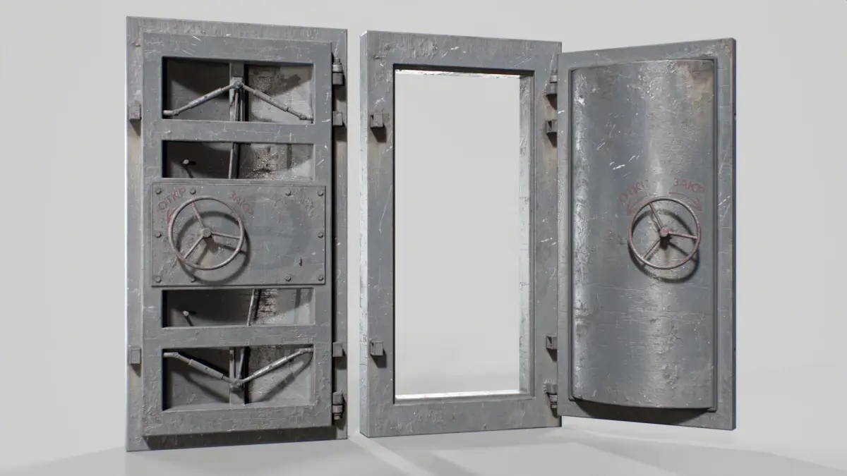 Pbr lowpoly gameready bunker door in photorealistic style with color selection. The 3D model is fully ready for use in games.