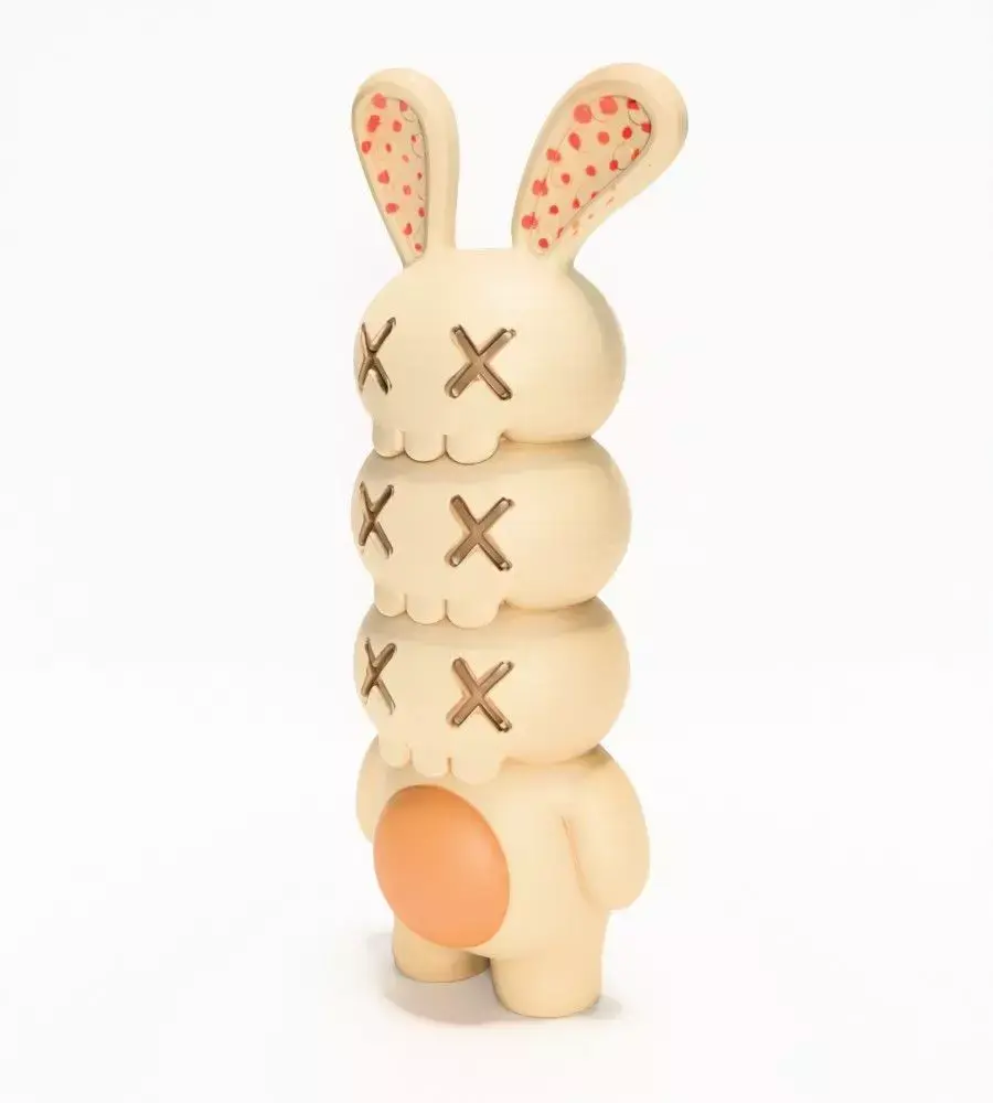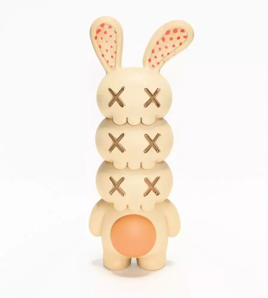 Bunny KAWS style is a fusion of pop culture and contemporary art, blending humor, nostalgia, and a certain symbolic gravity, all embodied in an anthropomorphic rabbit figure with crossed-out eyes, dressed in childlike accessories but loaded with deeper meanings.