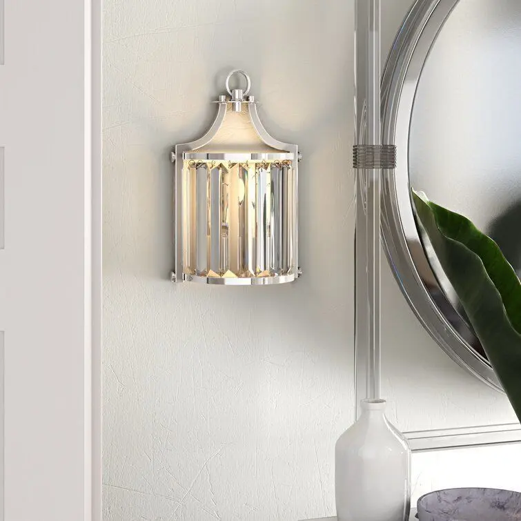 - Simply-chic style gets a glam update in this modern one-light flush mount. Crafted of steel in a fashionable finish, this wall-mounted fixture features an open drum frame accented by curved arms and decorative screw caps. Up top, a hoop finial lends a touch of architectural detail, while a faceted crystal shade ensconces one Edison bulb (included) to diffuse bright light as it’s dispersed throughout your space.