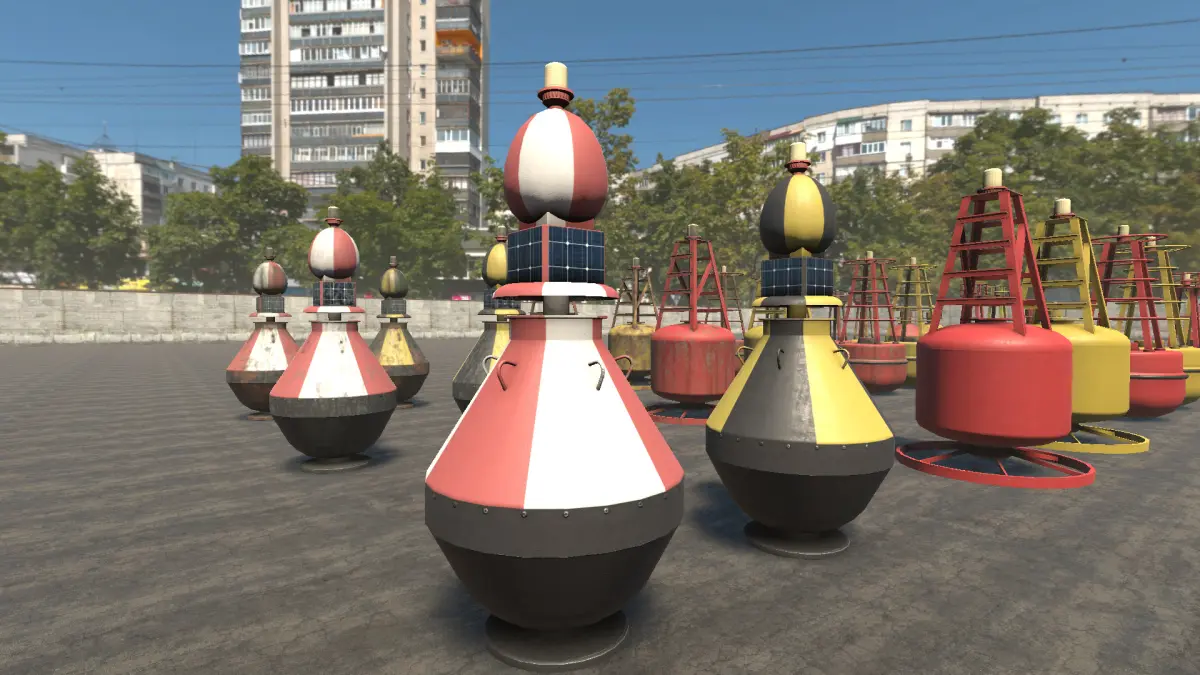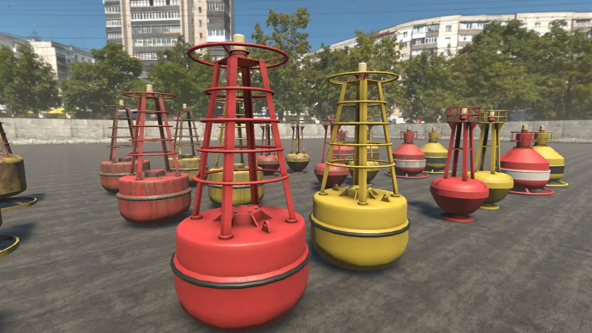 This package contains 5 different buoys.All of the include a clean, dirty and rusty version and 2 different color texture sets.