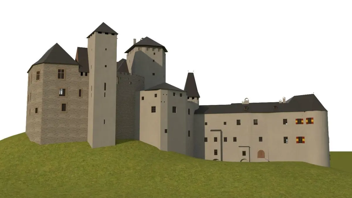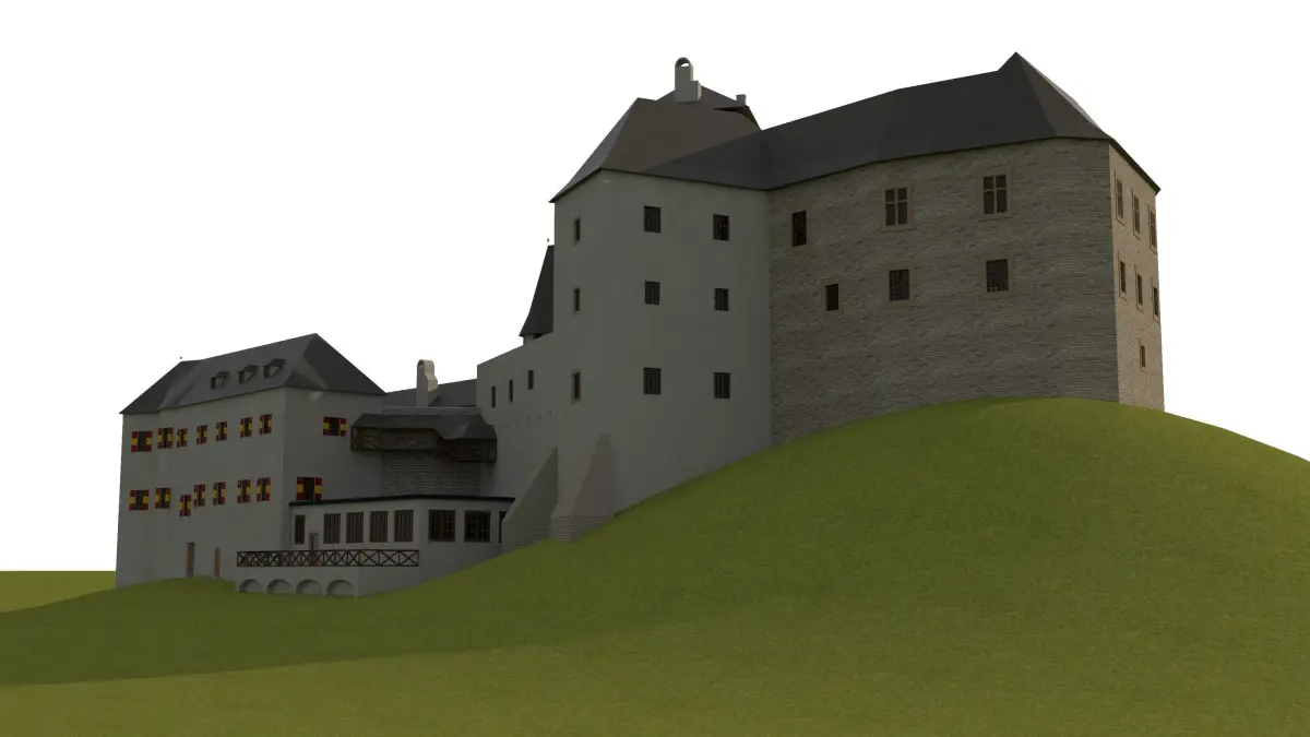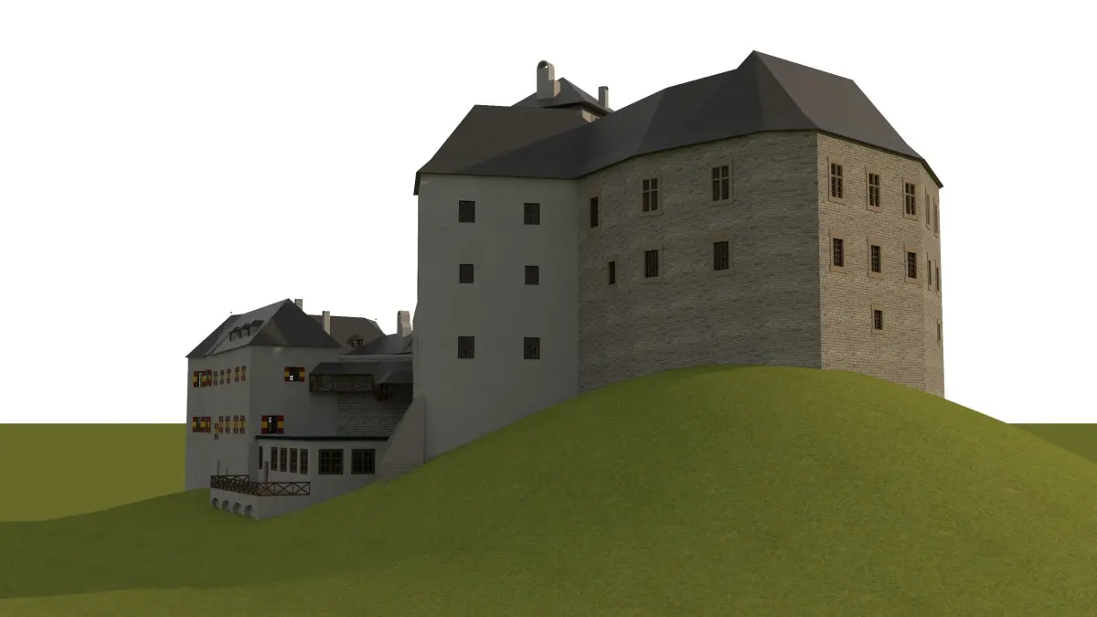 The model was designed after Burg Lockenhaus (Léka vára in hungarian), a castle and medieval fortress in the Güns Valley in the southeastern part of Lockenhaus, in Burgenland, eastern Austria.The oldest part of the castle is built on a hilltop, and later they expanded the building down along the ridge, so that the base of the building is not flat, but follows the terrain. For the modeling I used floor plans, drone videos and satellite imagery as well as tourist photos.It was originally modeled to manufacture a miniature mock-up building, then enhanced for further rendering. Modeling was approximate, without real measurements.