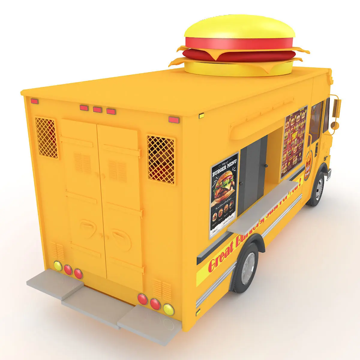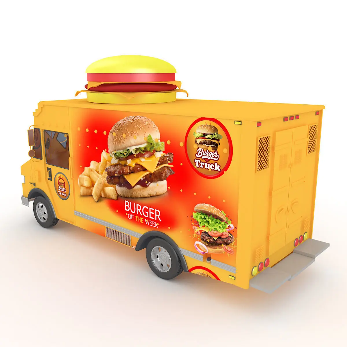 3D Model of Burger Truck This 'Burger Truck' is a high quality, photo real model that will enhance detail and realism to any of your rendering projects, detailed design that allows for close-up renders, and was originally modeled in 3DS MAX 2009 and rendered with V-Ray