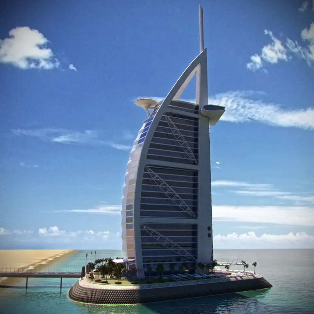 Very high detailed 3d model of the Burj al Arab hotel in Dubai