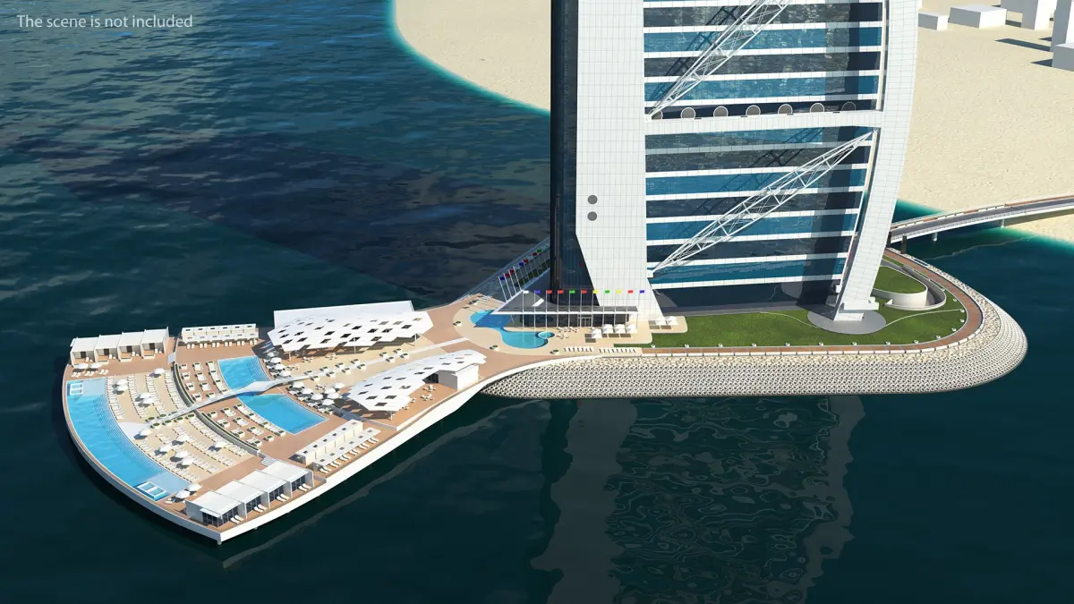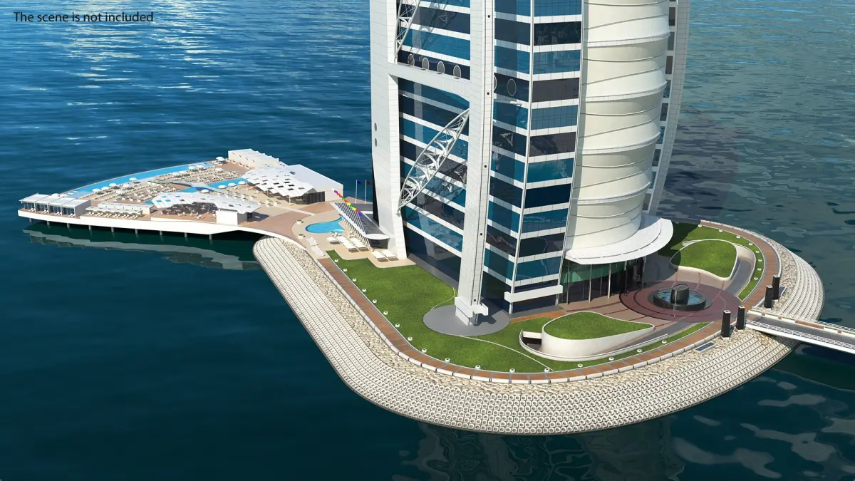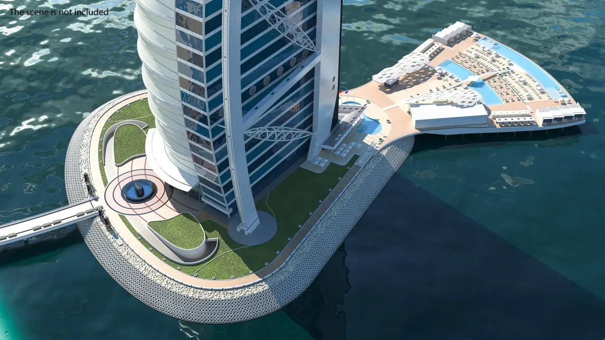 Burj Al Arab Luxury Hotel is a high quality, photo real 3d model that will enhance detail and realism to any of your rendering projects. The model has a fully textured, detailed design that allows for close-up renders, and was originally modeled in 3ds Max 2012 and rendered with V-Ray. Renders have no postprocessing.