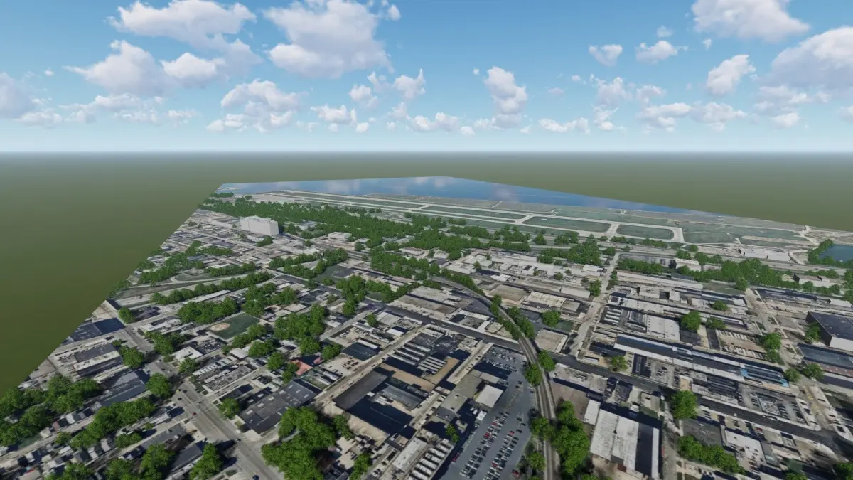 High resolution actual scale 1:1 3D model of the Burke Lakefront Airport located in Ohio. The model was created using Sketchup2020, exported to Lumion8 with trees and above file formats.