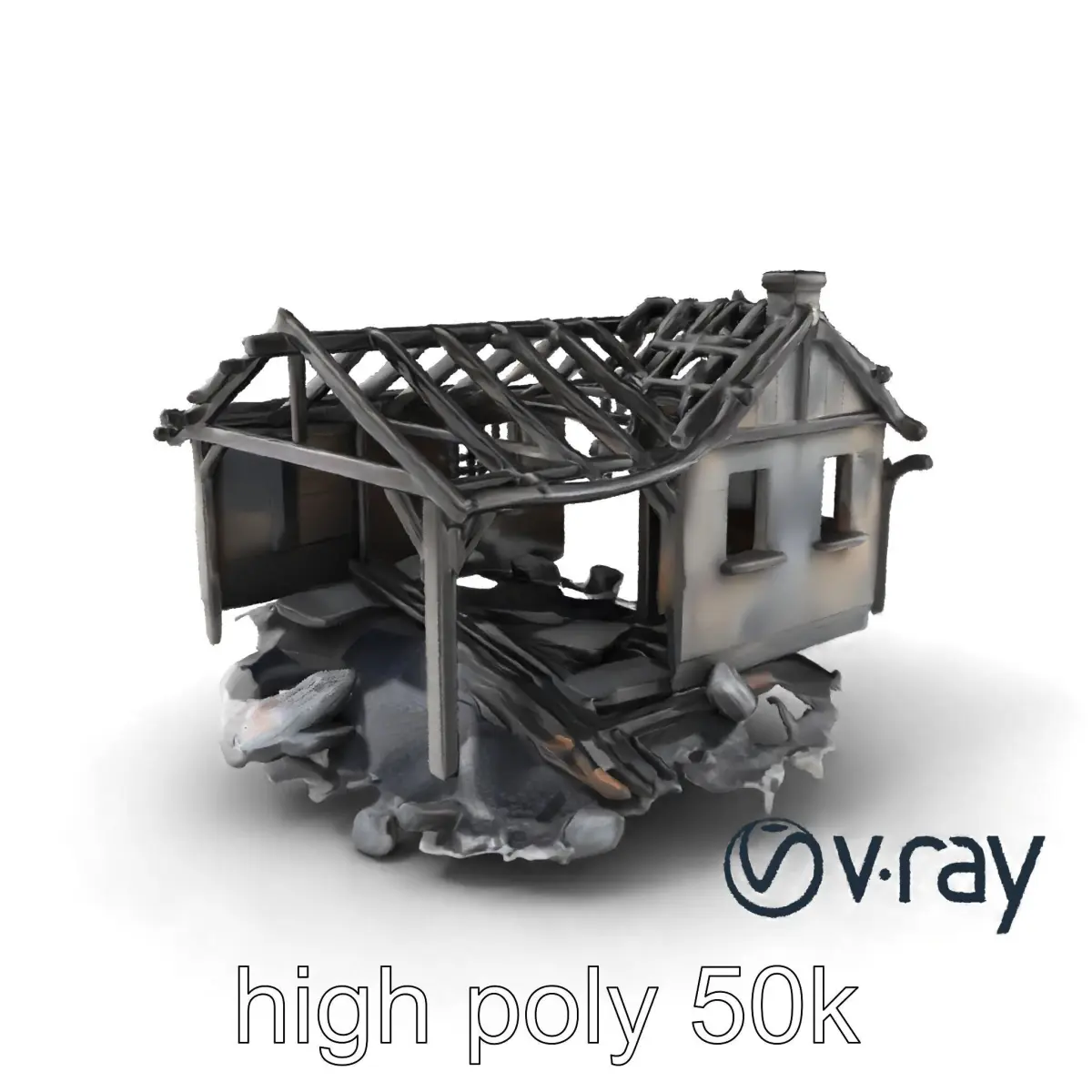 Each model has 3 levels of detail: low-poly, middle-poly, and high-poly, which allows for the use of this model in production rendering (such as 3ds max, Maya, Cinema4d, Blender, Vray/Corona/Cycles and all other), game engines (Unity and Unreal compatible), and interactive presentations, providing a choice of detail based on the LOD System principle. Ideal for post-apocalyptic scenes, horror games, or visual storytelling requiring burned architecture.