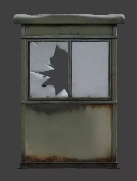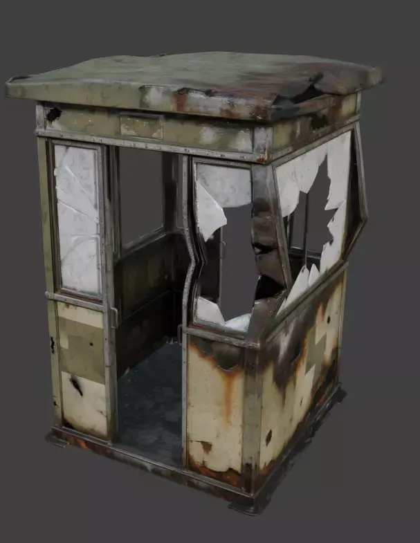 TagsGuardBooth, Military, SentryBox, Destroyed, 3DModel, WarDamage, Rusted, Abandoned, PostApocalyptic, GameAsset, Realistic, PBR, Camouflage, ShatteredGlass, Scorched, UrbanWarfare, Ruined, Battlefield, SecurityPost, EnvironmentProp