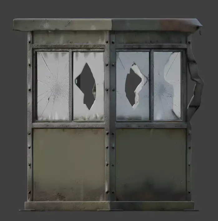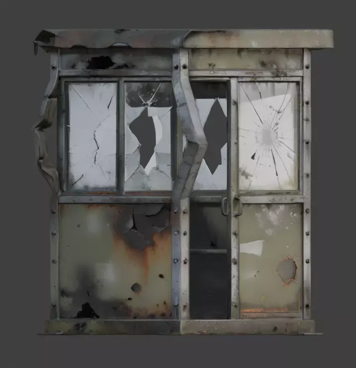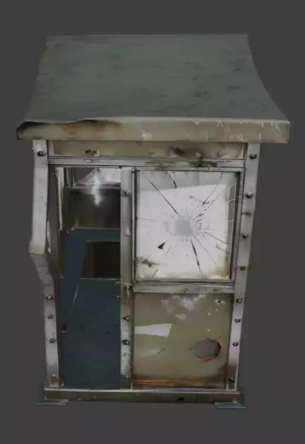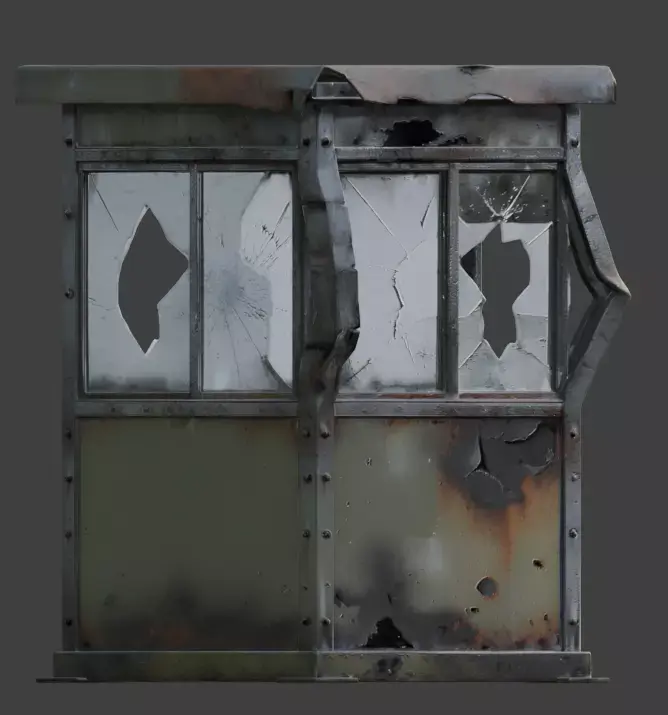 TagsGuardBooth, Military, SentryBox, Destroyed, 3DModel, WarDamage, Rusted, Abandoned, PostApocalyptic, GameAsset, Realistic, PBR, Camouflage, ShatteredGlass, Scorched, UrbanWarfare, Ruined, Battlefield, SecurityPost, EnvironmentProp