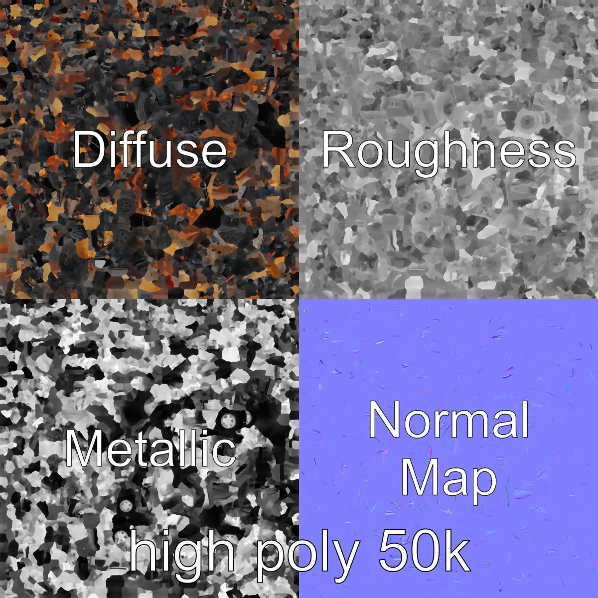 The model's textures are PBR, Diffuse, NormalMap, and reflection/roughness/metallic, which are suitable for any modern rendering engine. All models accurately unwrapped and have no overlapping UV. All textures are 4096*4096 in size.