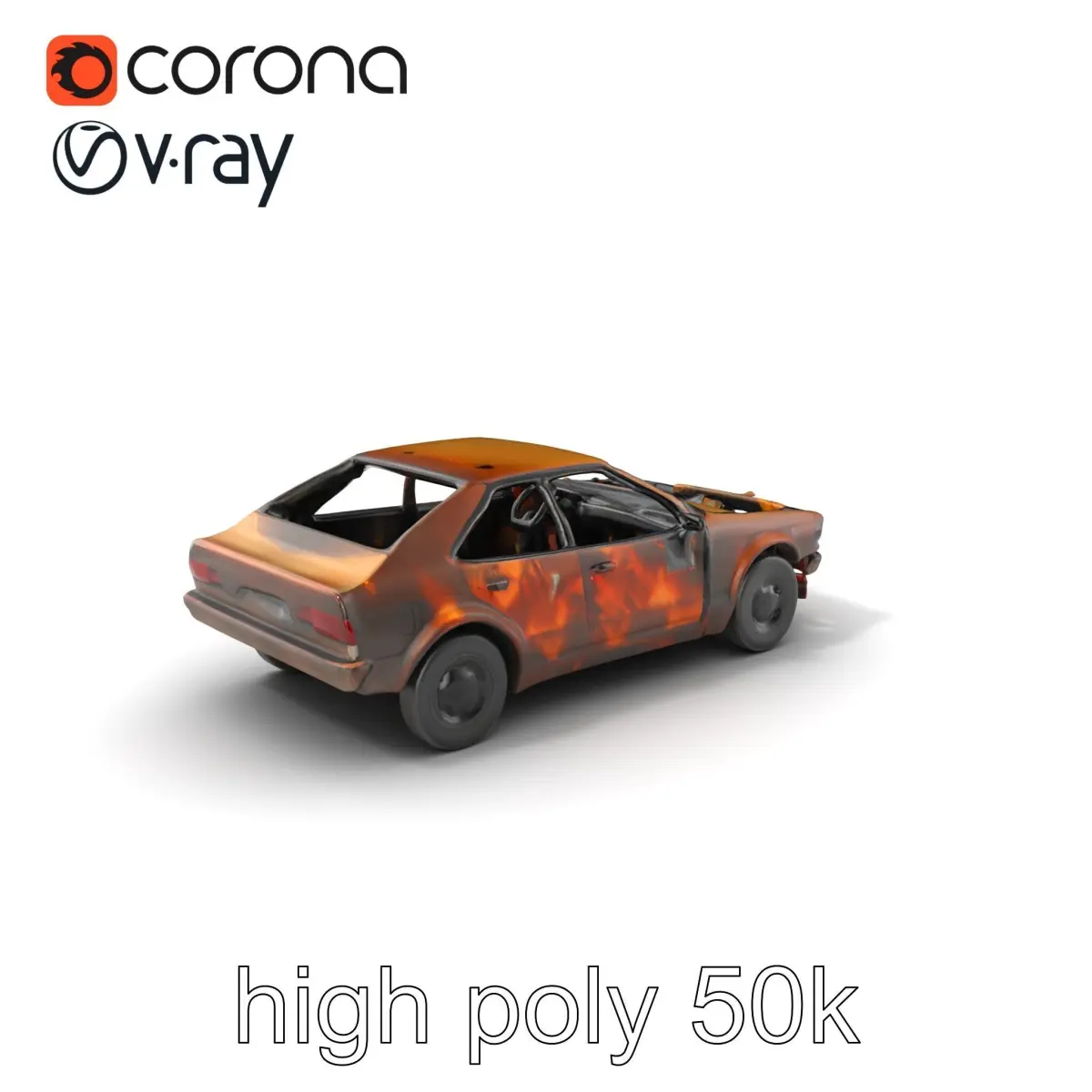 This model is ideal for creating realistic post-apocalyptic scenes, urban decay environments, and interactive simulations. The car's burnt and rusted appearance offers an authentic representation of destruction and decay, enhancing visual storytelling.