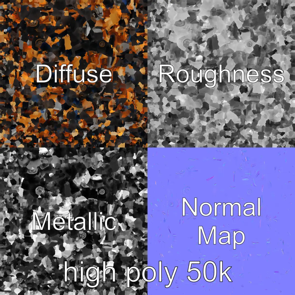 The model's textures are PBR, Diffuse, NormalMap, and reflection/roughness/metallic, which are suitable for any modern rendering engine. All models accurately unwrapped and have no overlapping UVs. All textures are 4096*4096 in size.