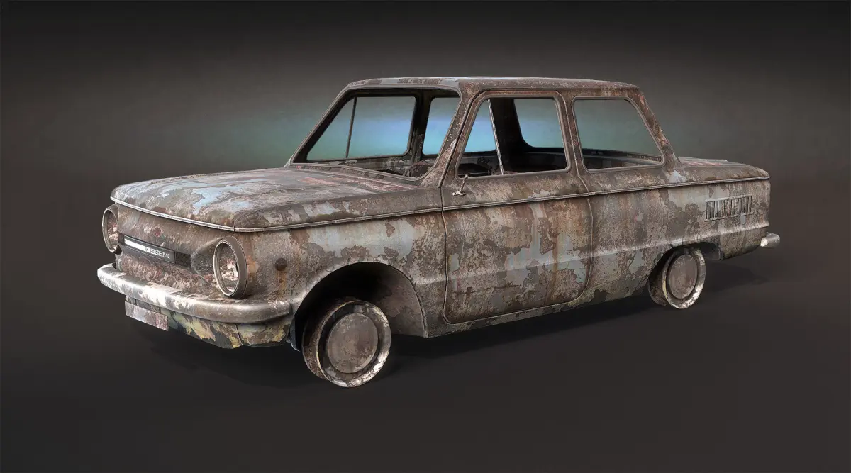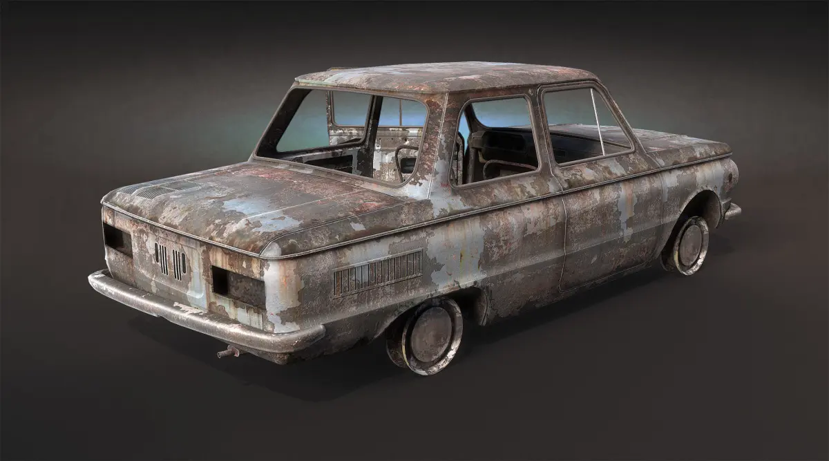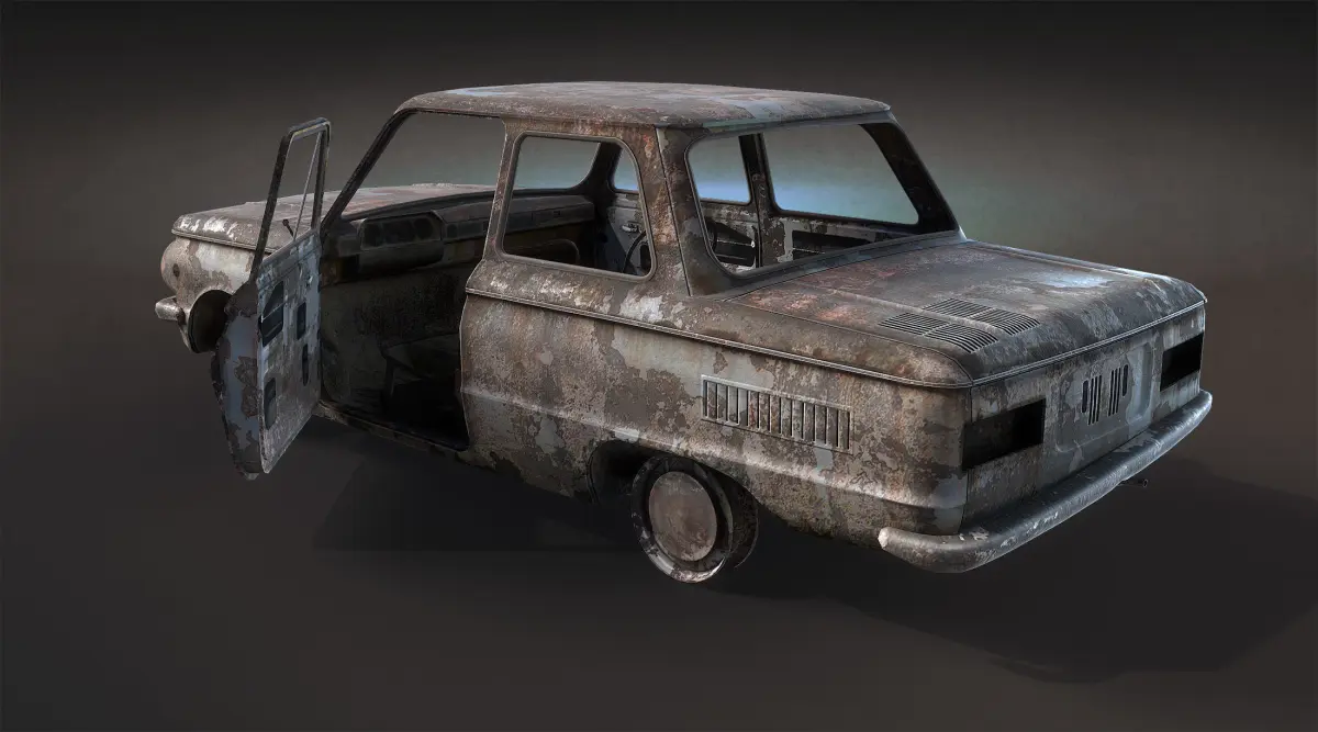 Game low-poly model of damaged car.