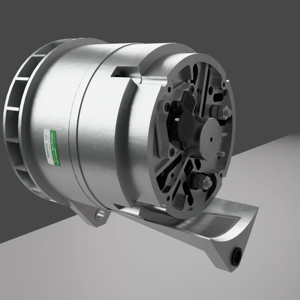 The realistic 3D model based on the dimensional specifications of the real alternator, as close as possible to the originalThe alternator paint has UV coordinates.Contains all internal parts separated into individual pieces Rotor, Stator, Diode Plate and Regulator.