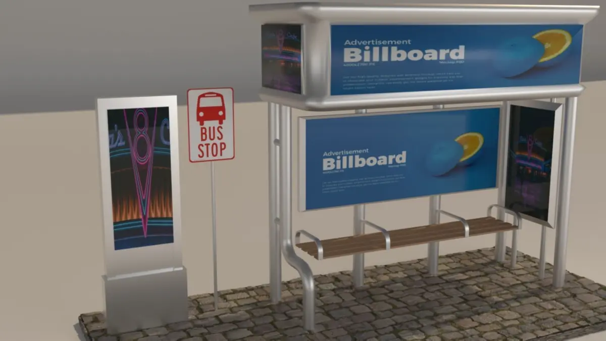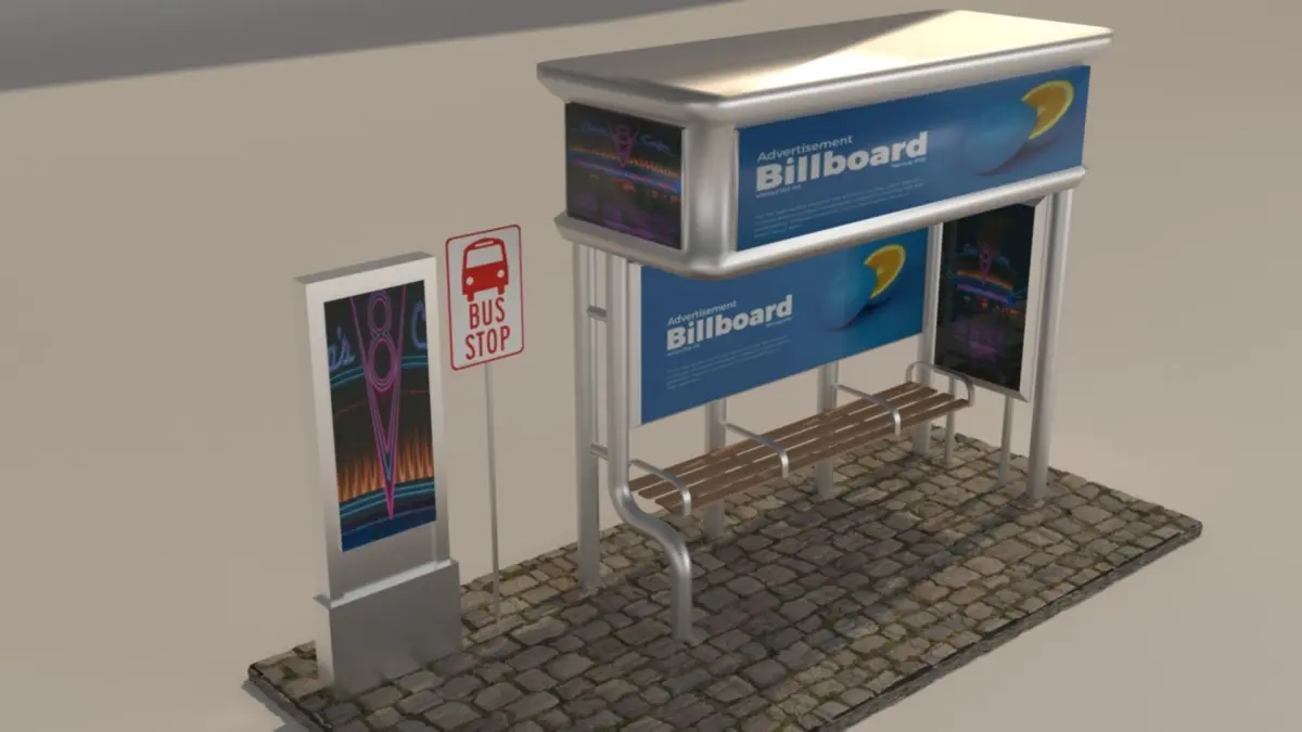 High resolution, realistic, fully detailed and textured Bus Stop Detailed enough for close-up renders. Model comes with detailed textures. All parts are separate and pivoted for animation.