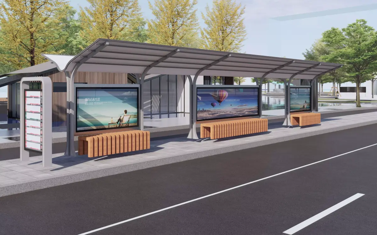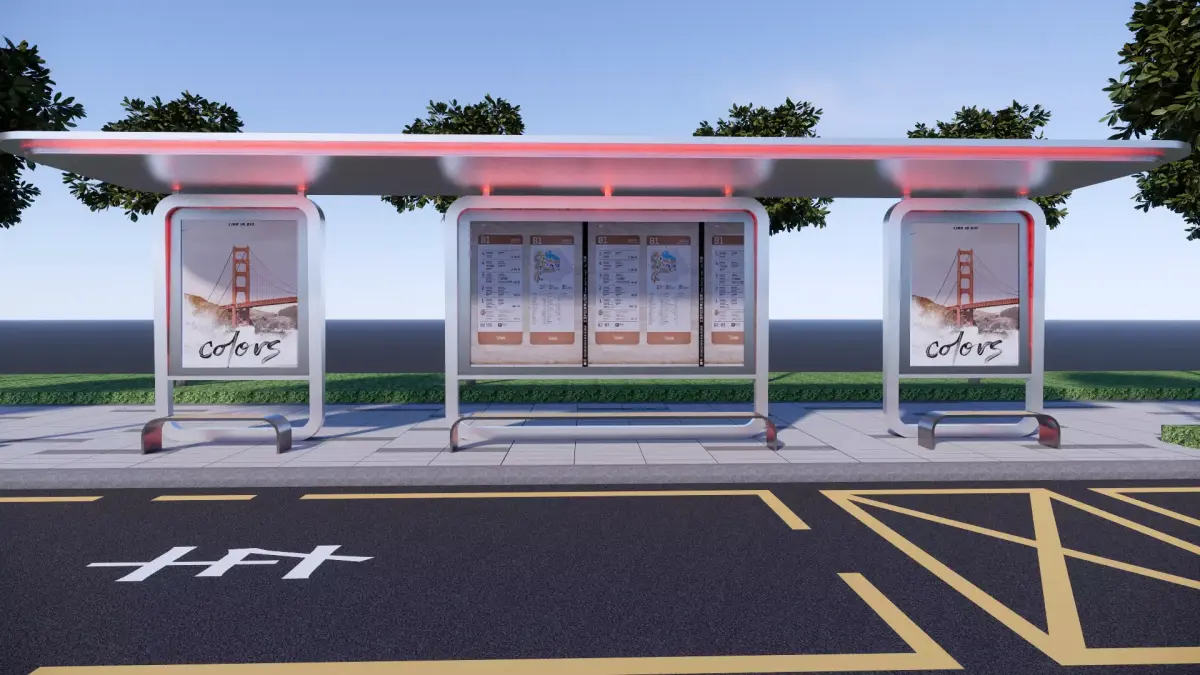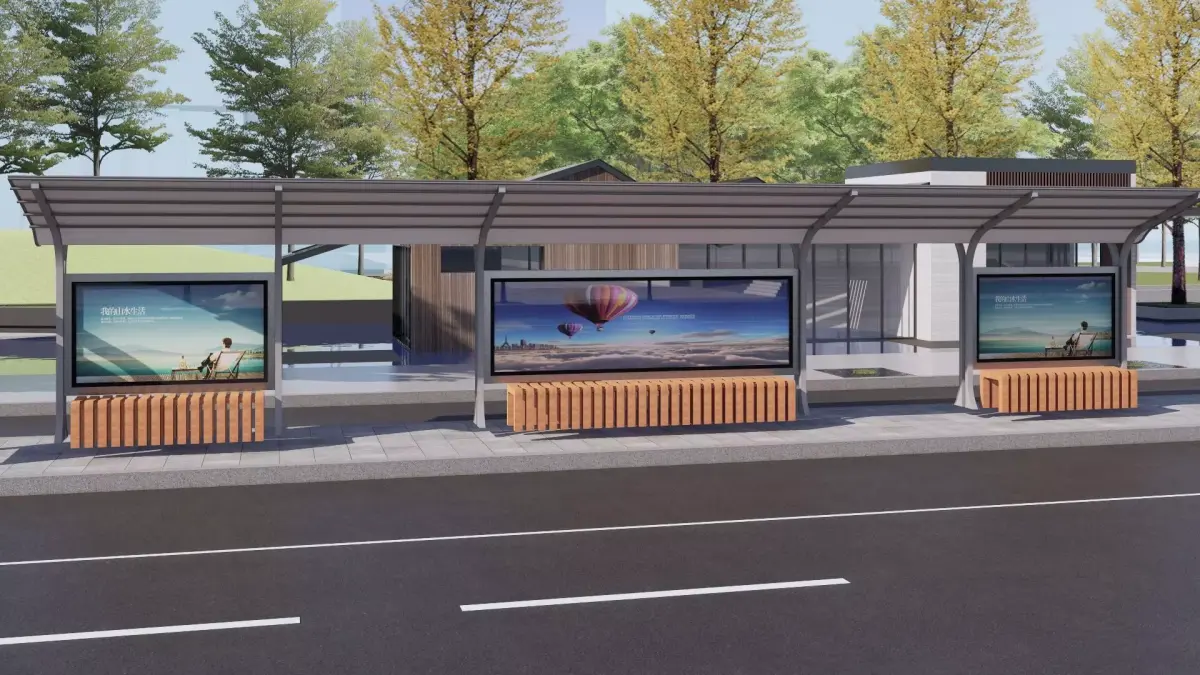 Traditional bus stop constructions with benches, which are a special place where bus vehicles stop for passengers to get on and off the bus vehicle.For bus vehicles, urban mobility, urban architecture styles, public transit services, urban architecture, city transportation, city constructions, city transport, public mobility transport, urban mobility, and interurban public vehicles promotional projects.