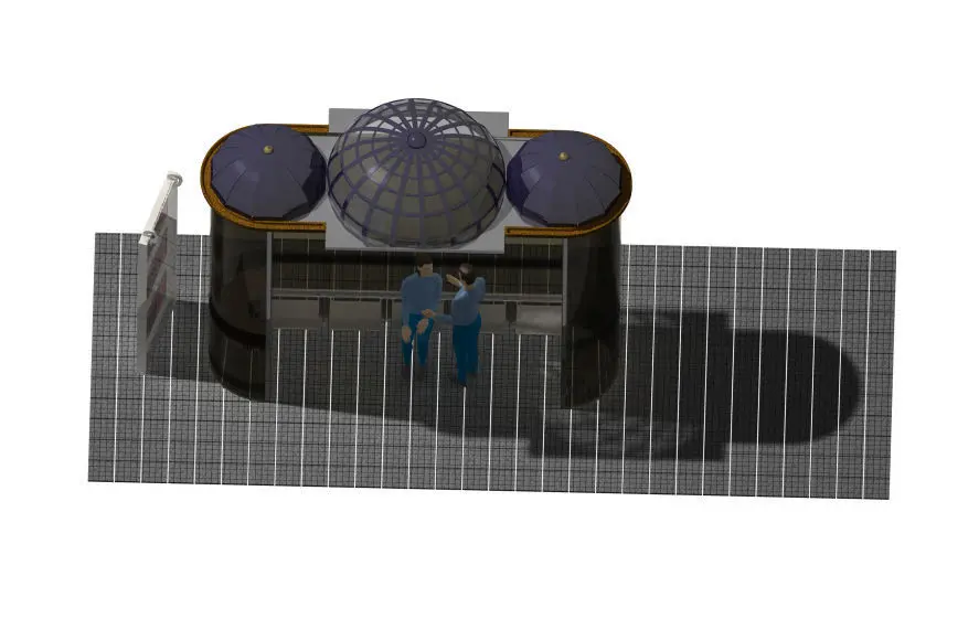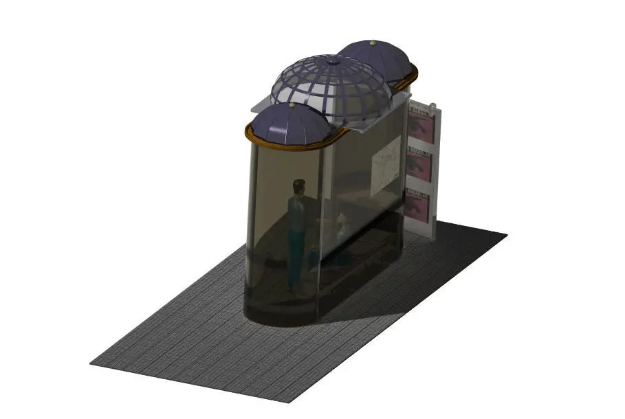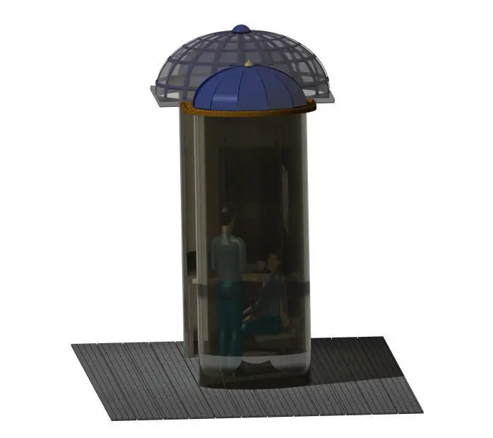 An ergonomic seating arrangement has been designed for the stall. In addition, the easy applicability of the solar energy system is taken into account in this design.