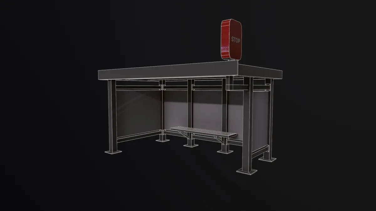 The following 3D model is known as "Bus Stop Low-poly 3D model 28" and is associated with author "Unknown author".