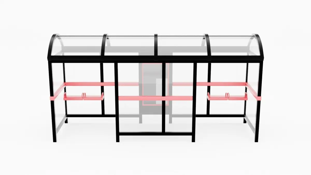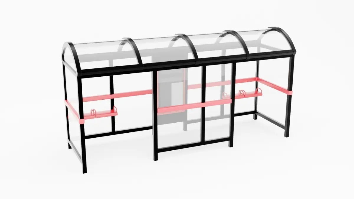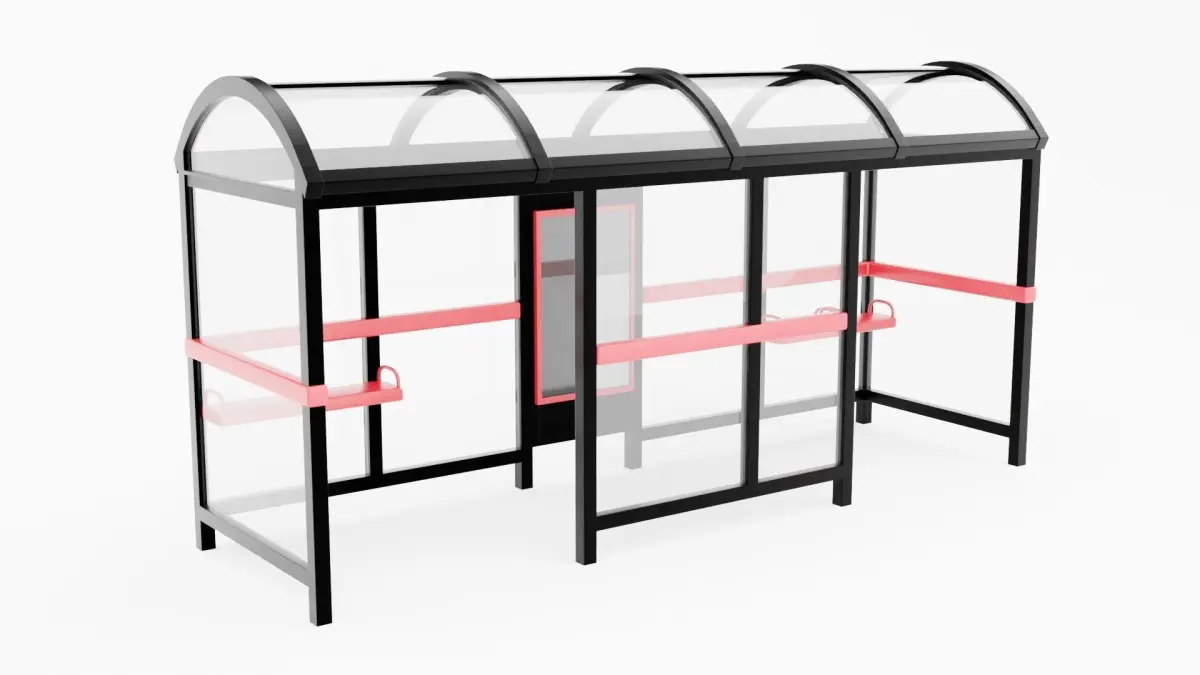 Bus stop shelter 3D model that was made using Blender. This model was made using metallic and glass materials. It has a rounded roof, 4 seats inside the shelter as well as a glass box with an empty plane in it. The plane can be customized with any image you like. This model uses clean topology and materials that have been baked into game ready PBR textures.