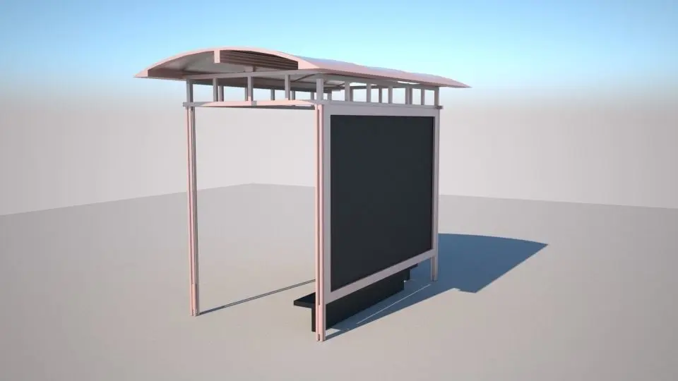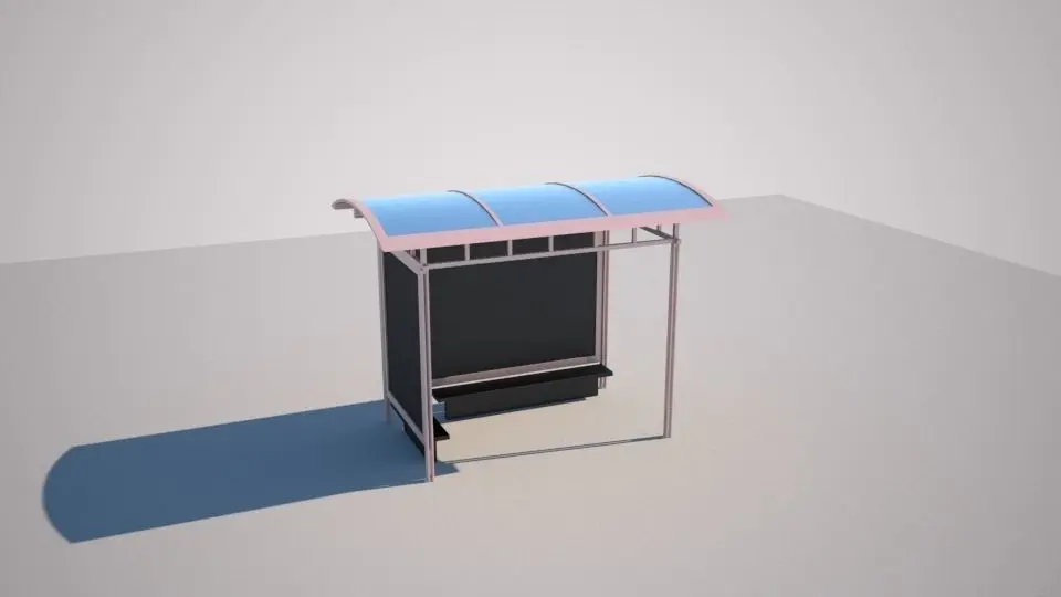 3d model of bus stop shelter.Available 3d file format: .max (Autodesk 3ds max 2016) .mb (Autodesk MAYA 2018) .fbx (2013) .obj