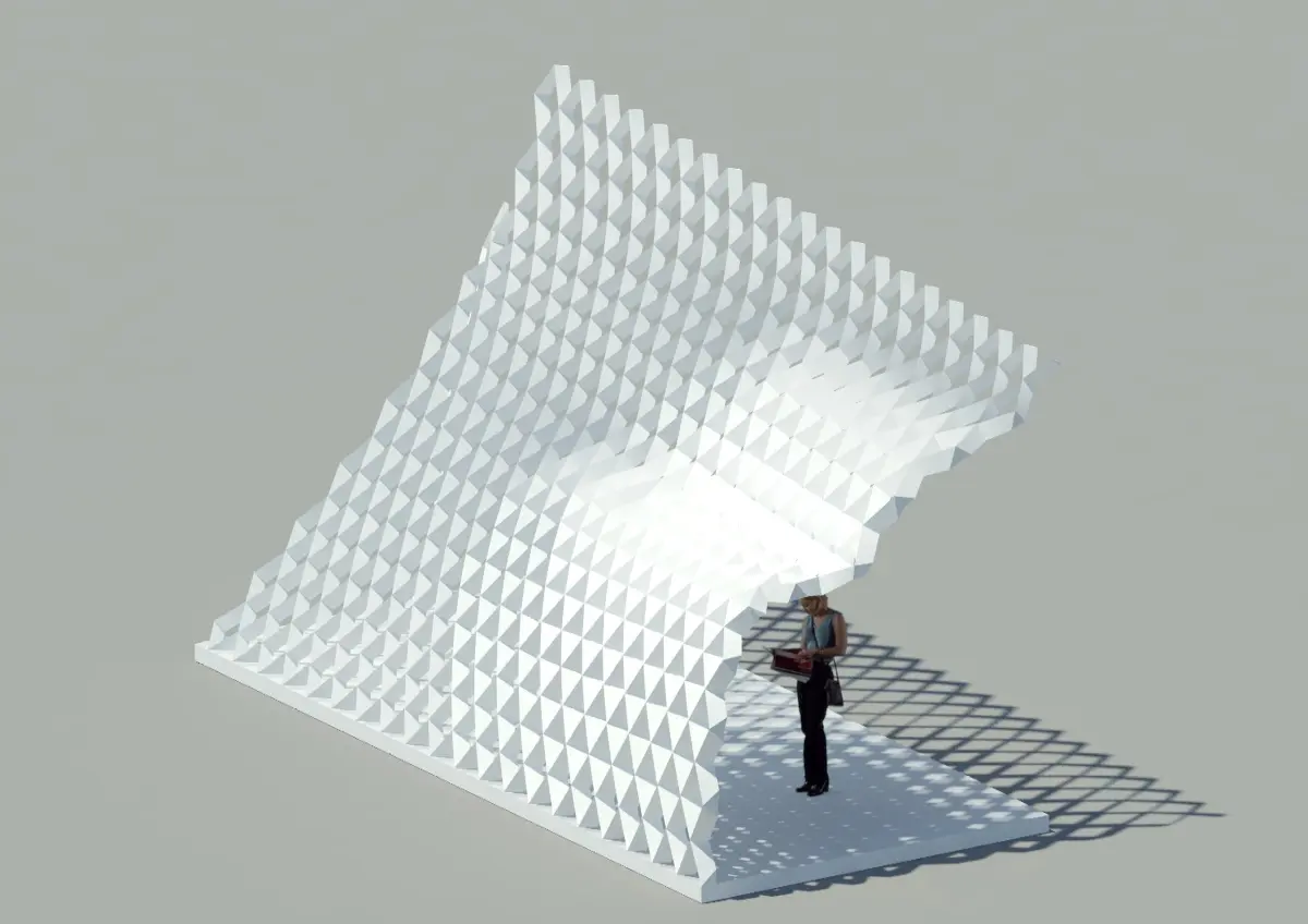 A bus stop structure designed with the theme of adaptive building.