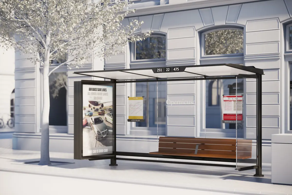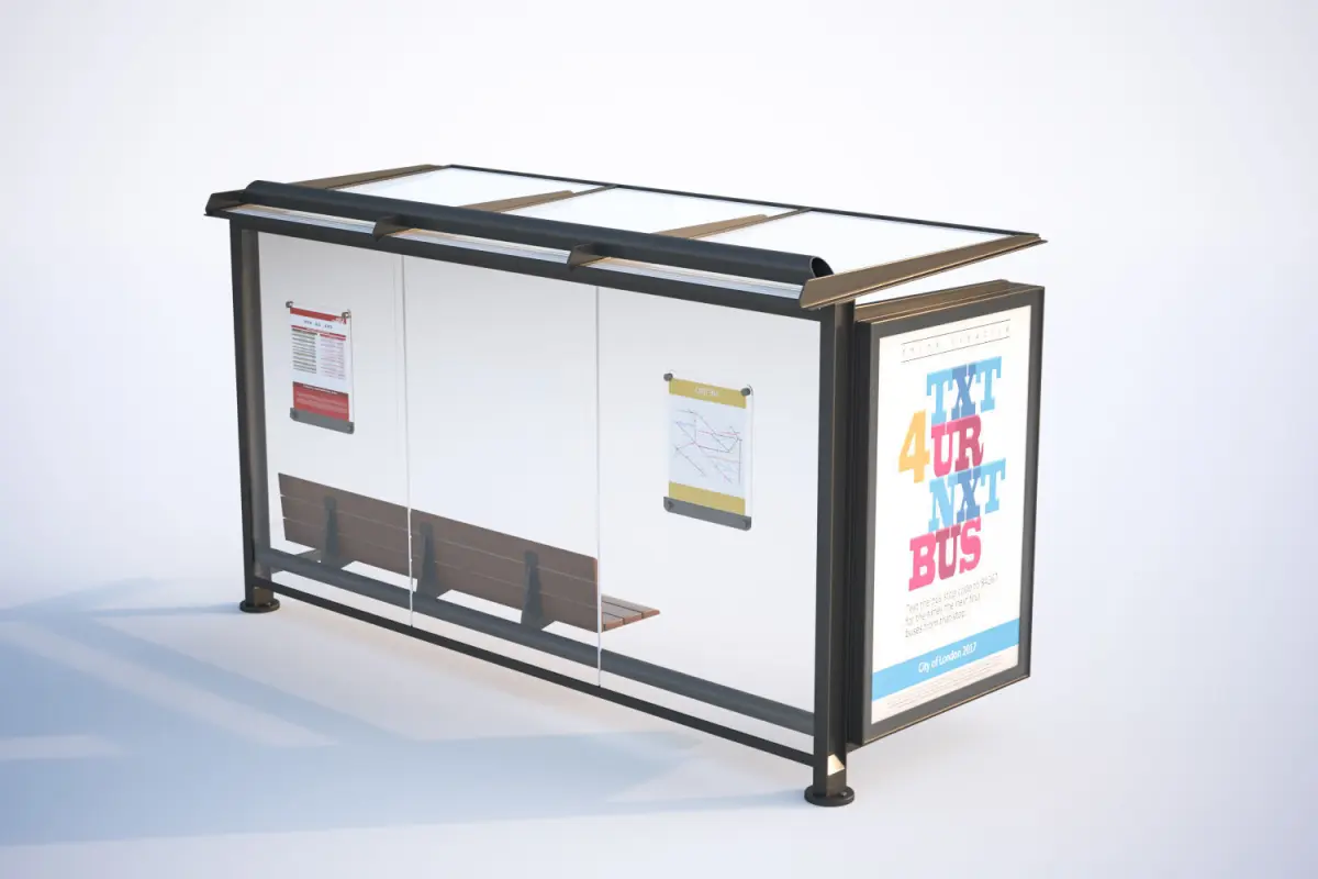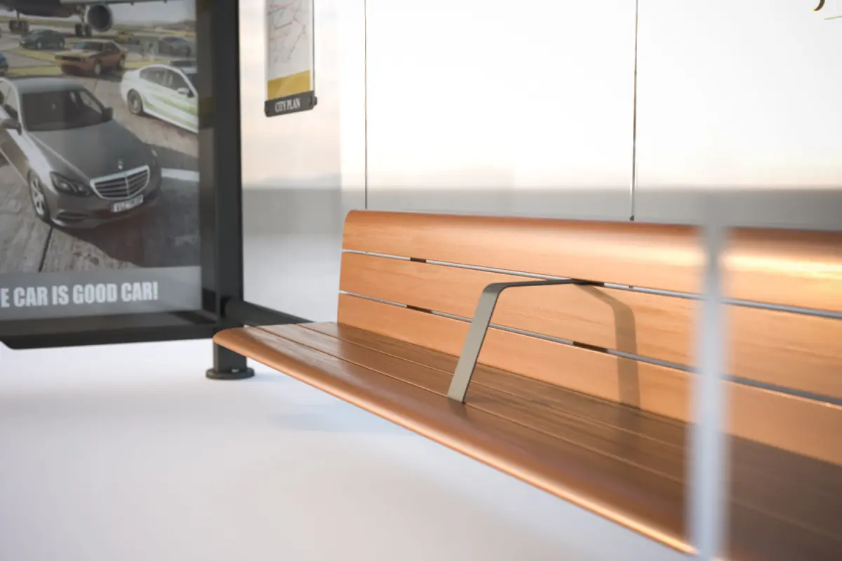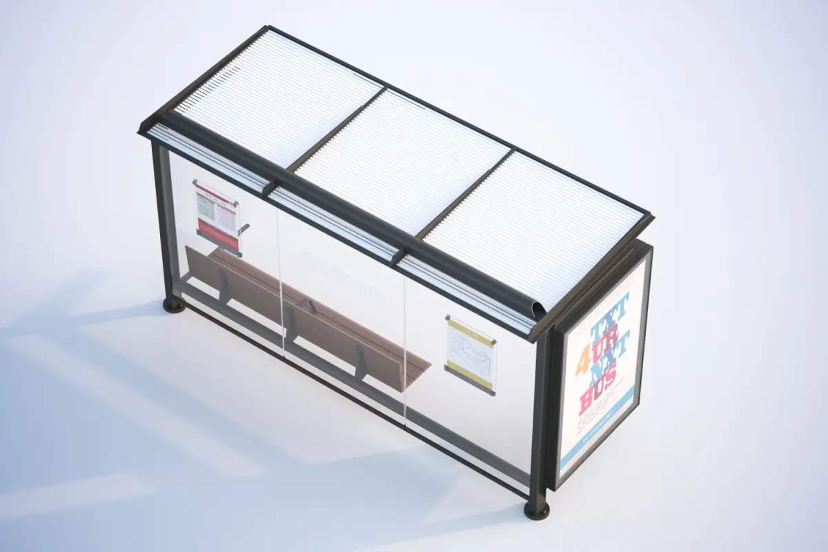 This realistic model includes covered bus stop, covered with walls on three sides. In the middle of a long wooden bench.Model prepared for 3d architectural visualisations and other graphic works.