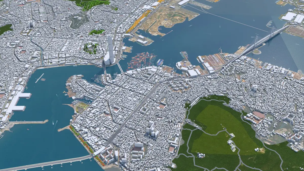 Accurate 3D city model and its surrounding area based on GIS data Year 2022