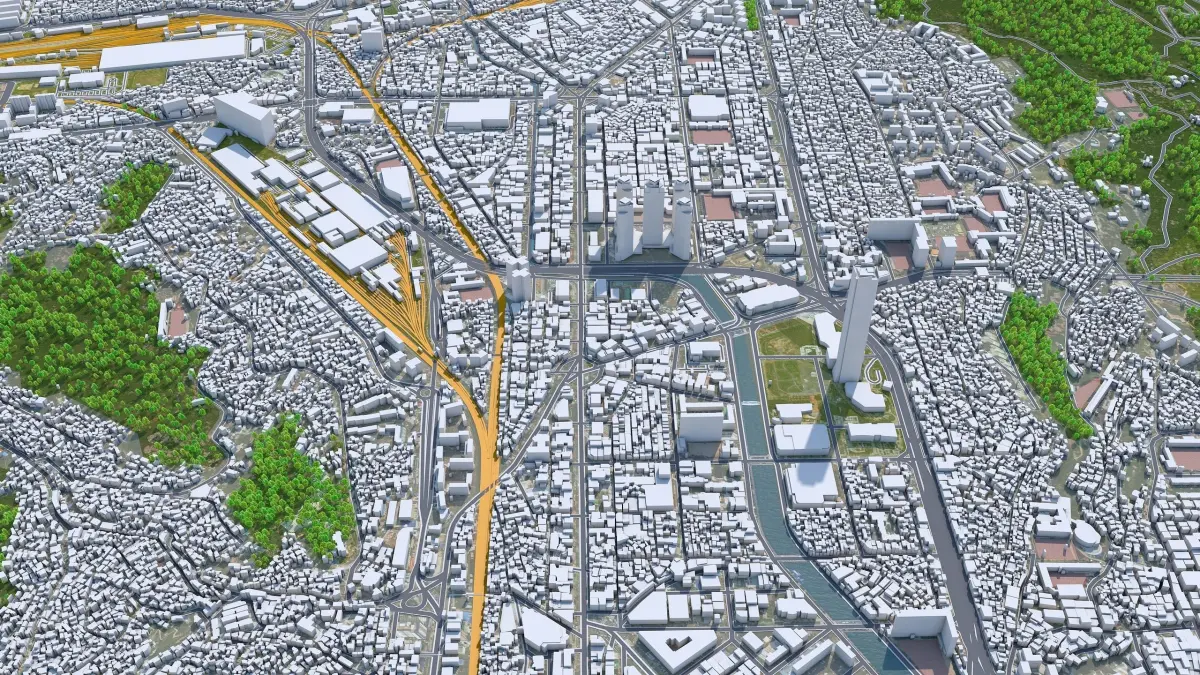 Accurate 3D city model and its surrounding area based on GIS data Year 2022