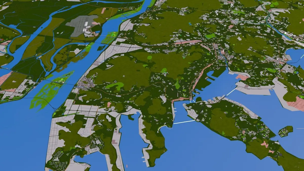 Based on latest GIS data. Webmercator projection. 1:1 scene scale