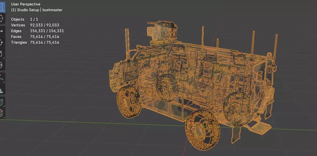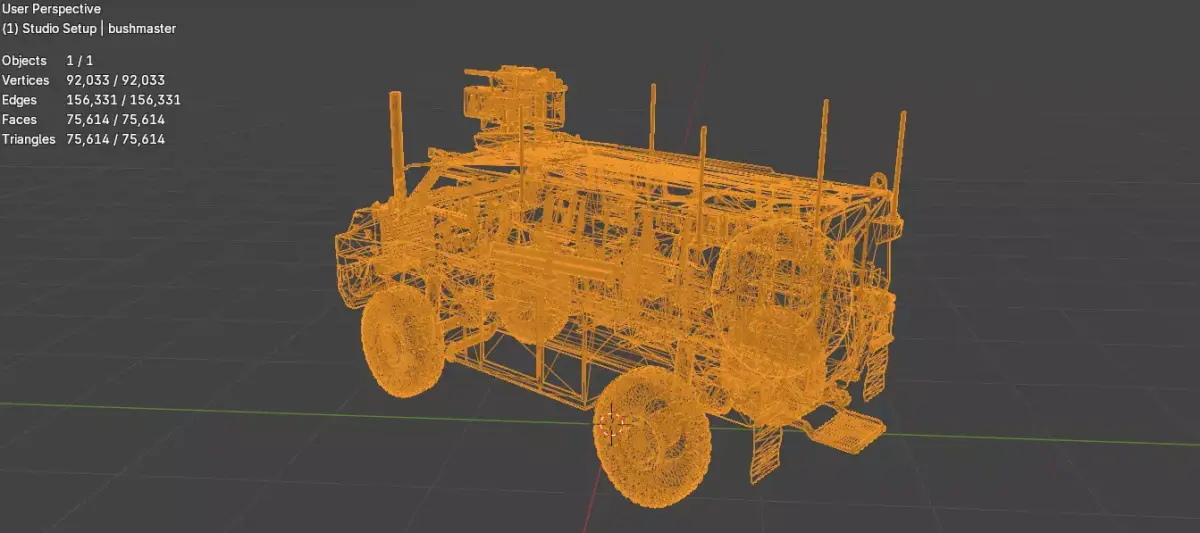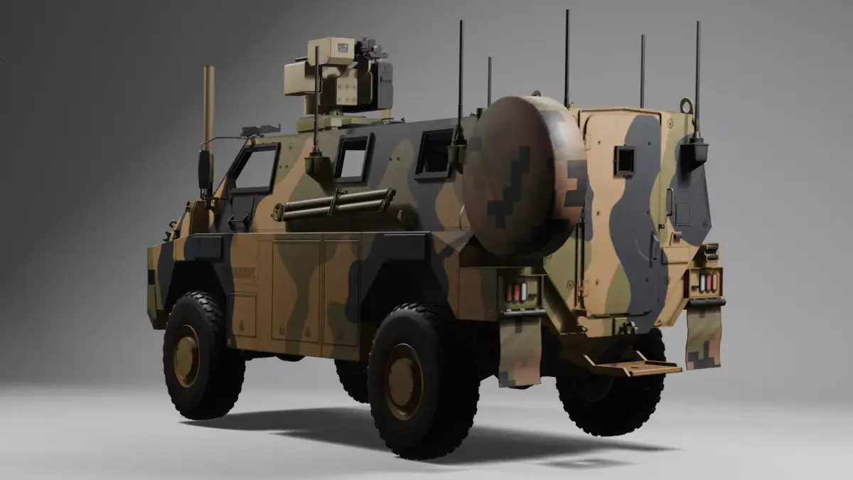 High-quality Bushmaster MRAP armored vehicle 3D model, fully prepared for professional use in games, simulations, cinematics, and real-time applications.