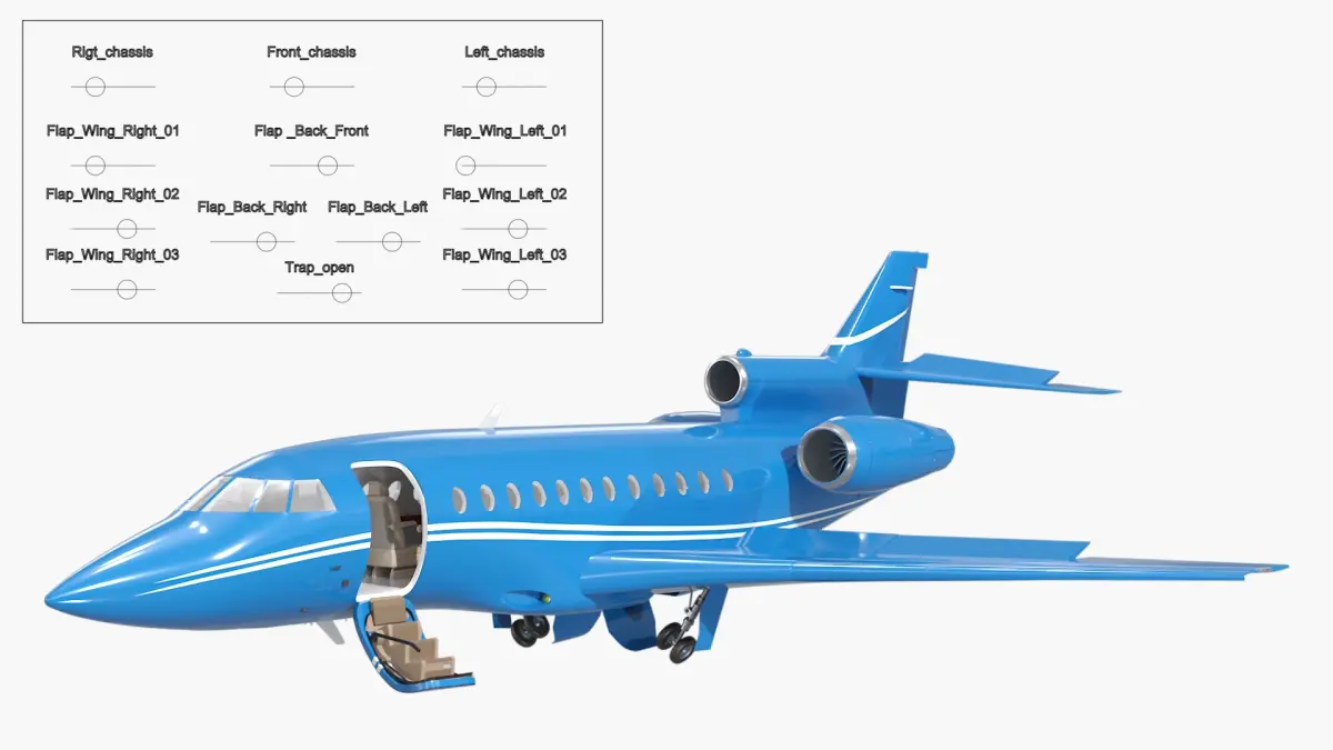 Business Jet Plane Rigged is a 3d model of a sleek private jet design, showcasing modern aviation technology and style.